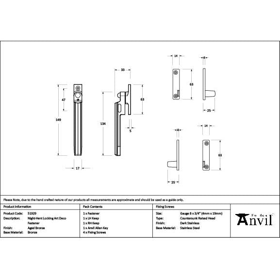 Aged Bronze Night-Vent Locking Art Deco Fastener