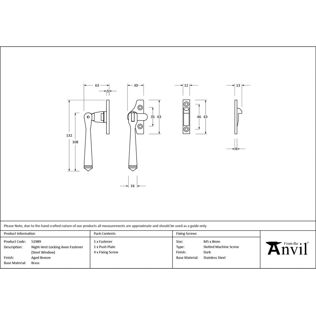 Aged Bronze Night-Vent Locking Avon Fastener (Steel Window)