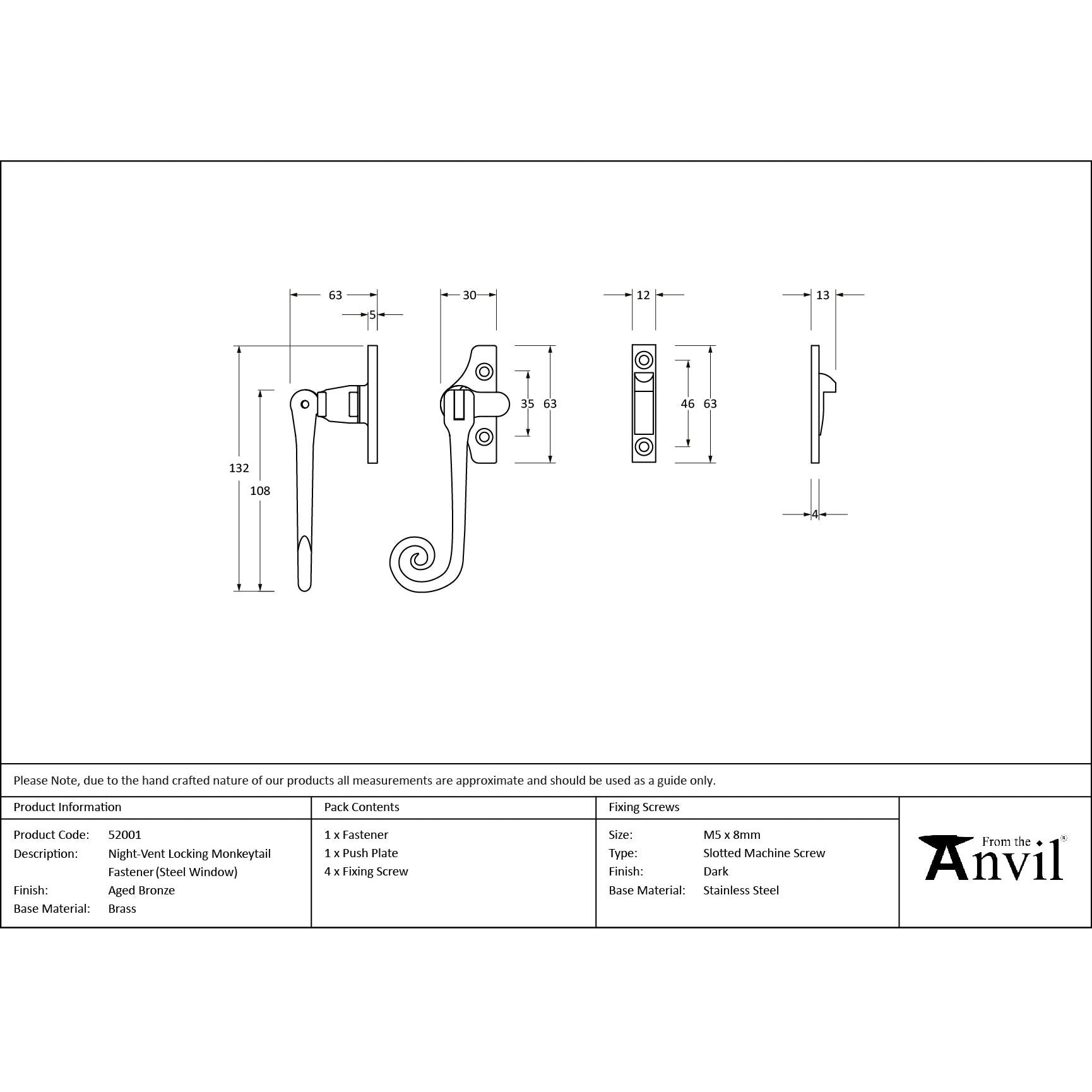 Aged Bronze Night-Vent Locking Monkeytail Fastener (Steel Window)