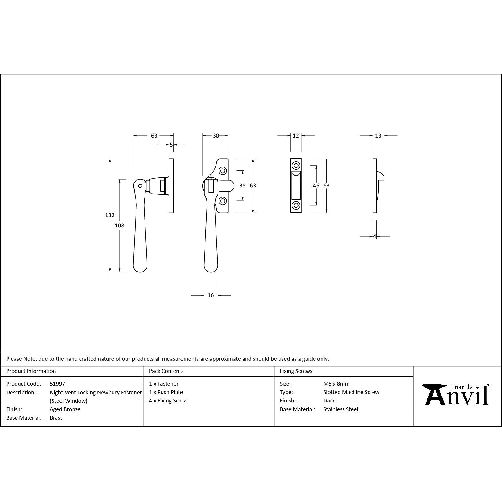 Aged Bronze Night-Vent Locking Newbury Fastener (Steel Window)