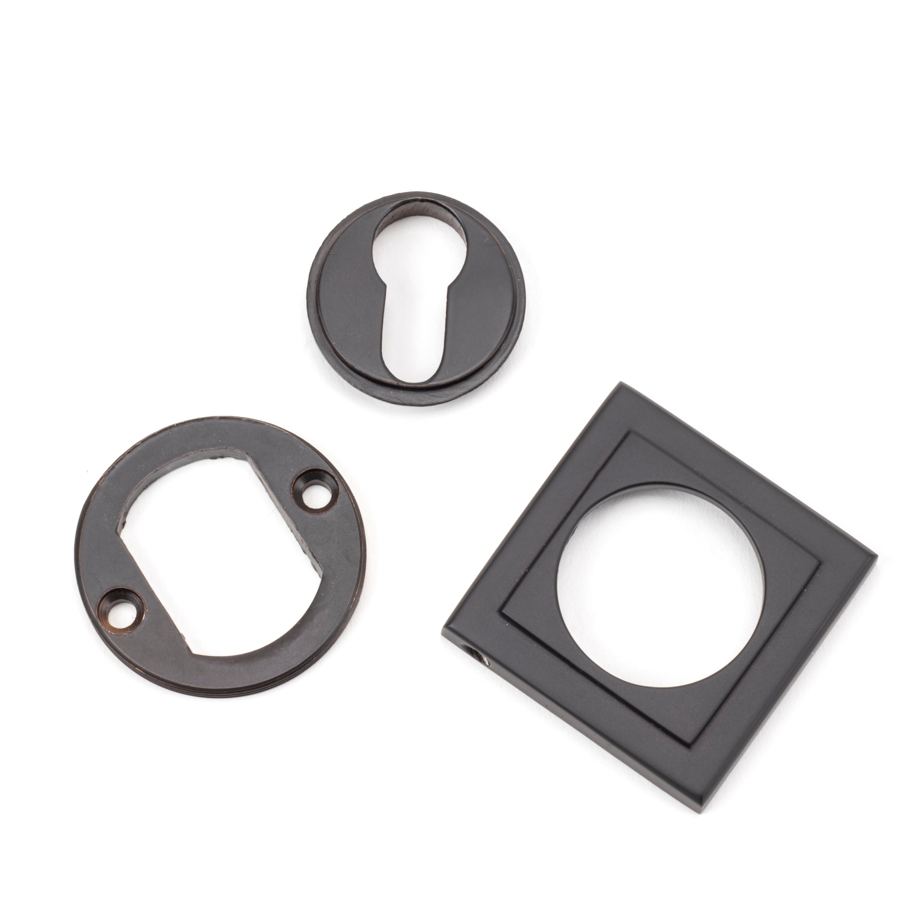 Aged Bronze Round Euro Escutcheon (Square) | From The Anvil