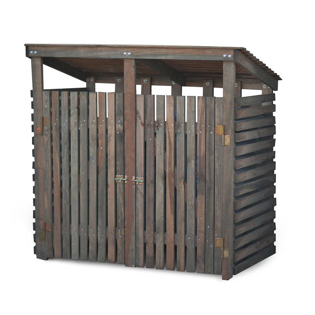 The weatherproof and secure design requires simple self-assembly and provide you with a simple stylish way to disguise wheelie bins whether proudly on show or subtly hidden. The design features a slanted roof allowing rain to drain easily and the door includes a bolt lock to ensure the door is kept shut.