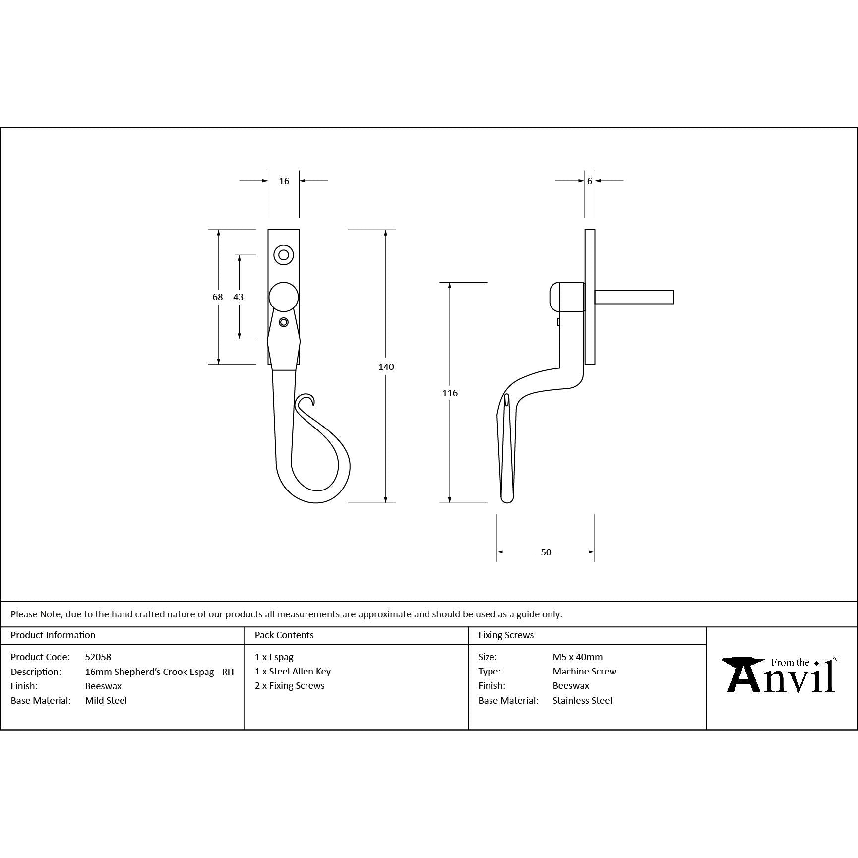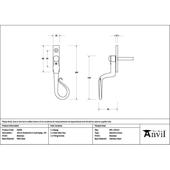 Beeswax 16mm Shepherd's Crook Espag - RH