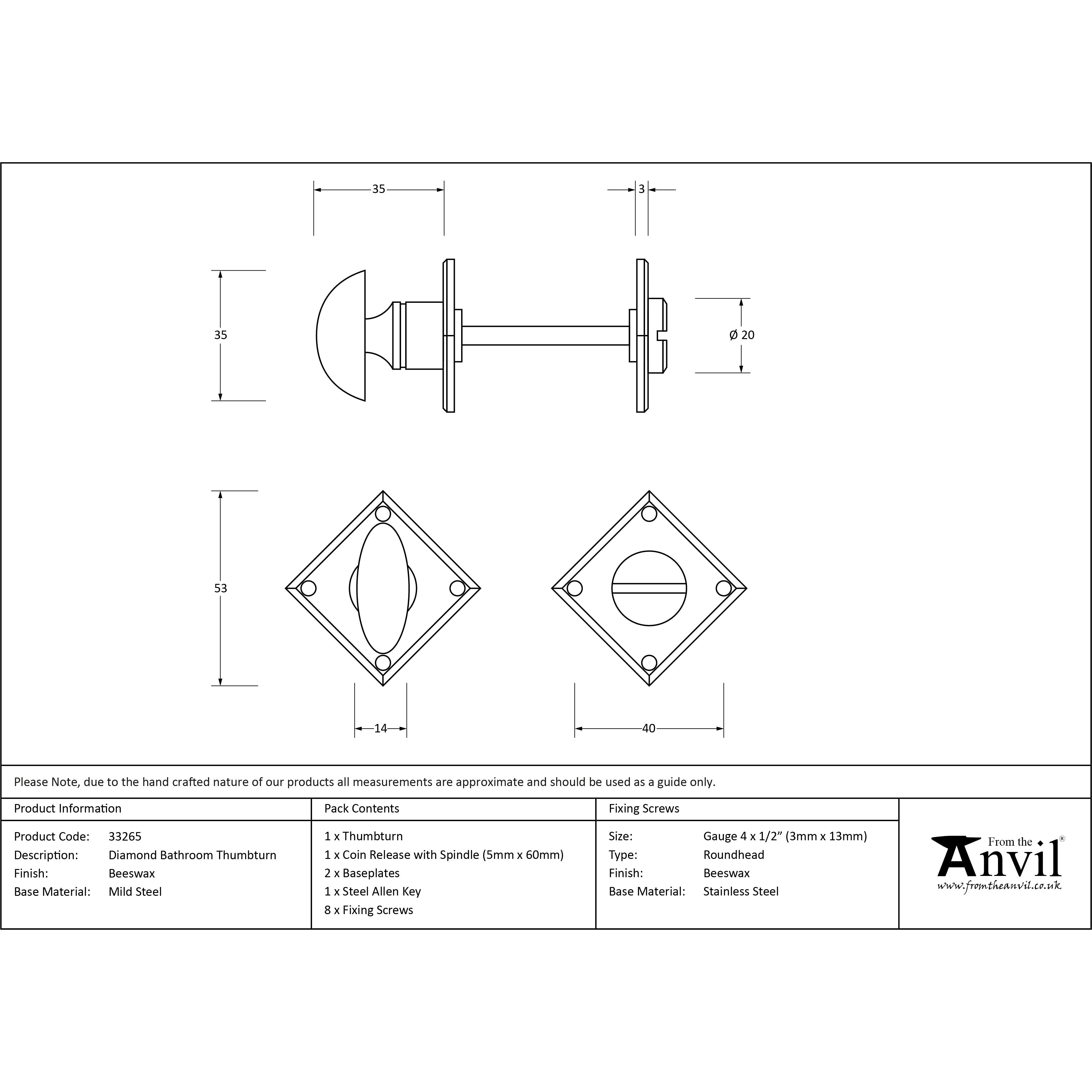 Beeswax Diamond Bathroom Thumbturn | From The Anvil