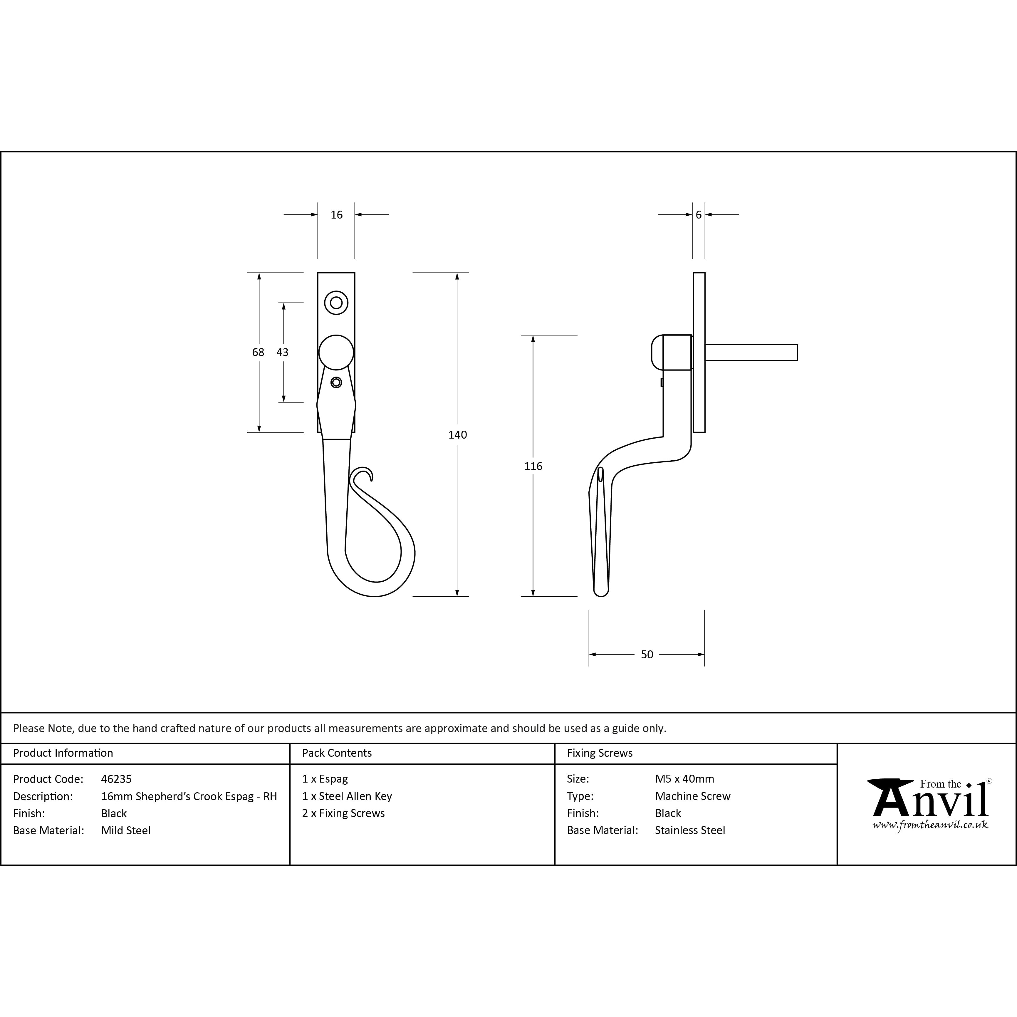 Black 16mm Shepherd's Crook Espag - RH | From The Anvil