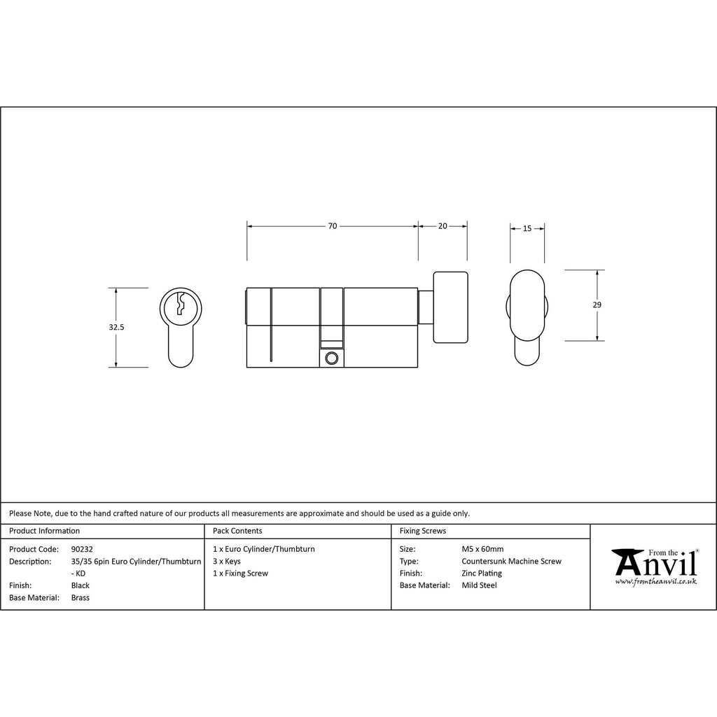 Black 35/35 6pin Euro Cylinder/Thumbturn KD | From The Anvil