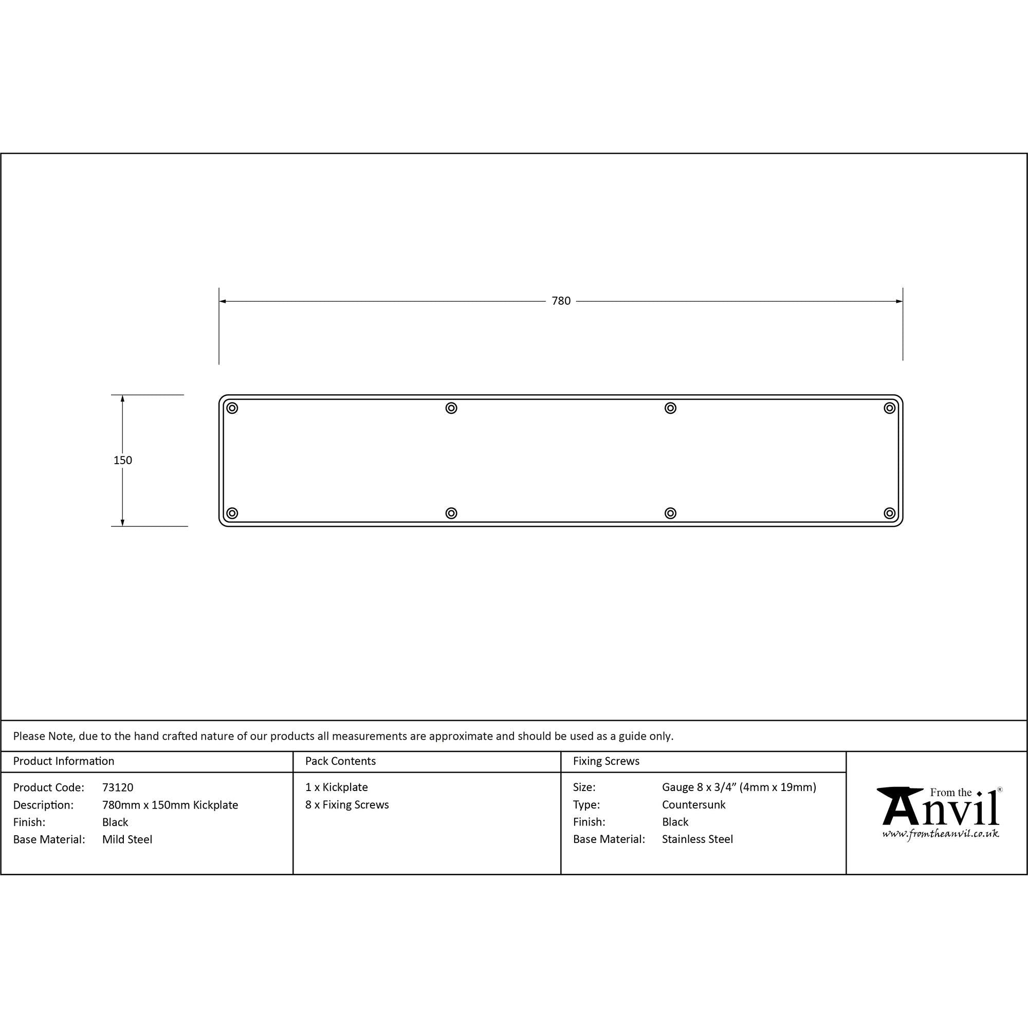 Black 780mm x 150mm Kick Plate | From The Anvil