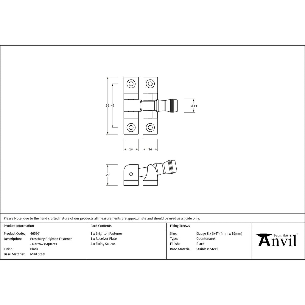 Black Prestbury Brighton Fastener - Narrow (Square)