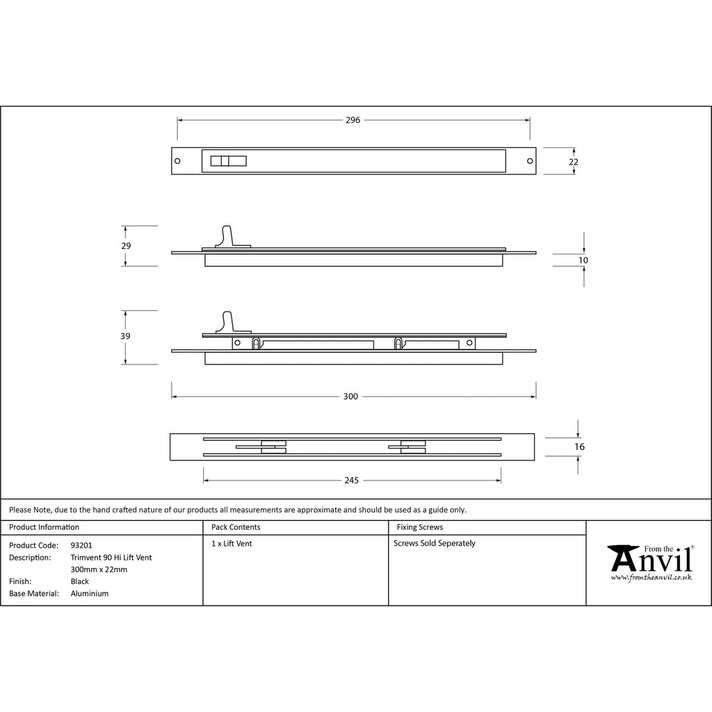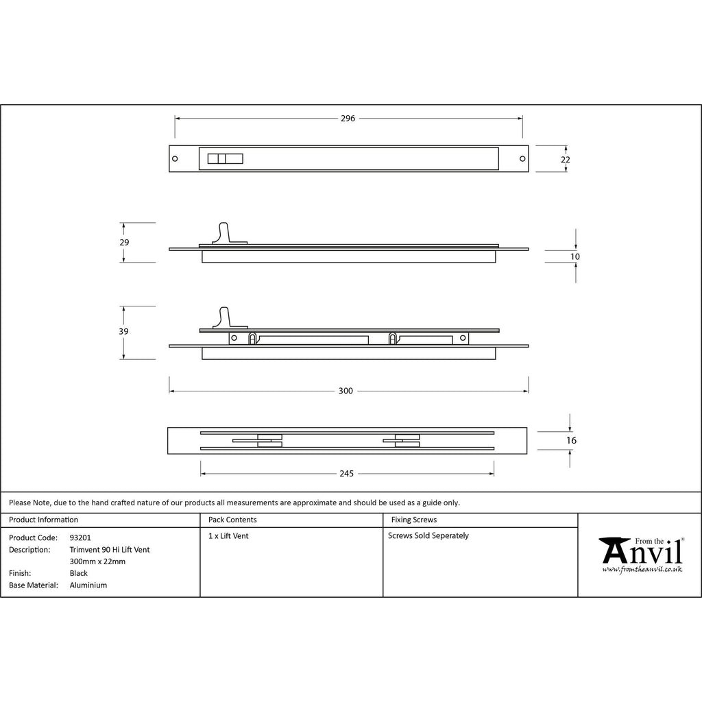 Black Trimvent 90 Hi Lift Vent 300mm x 22mm | From The Anvil