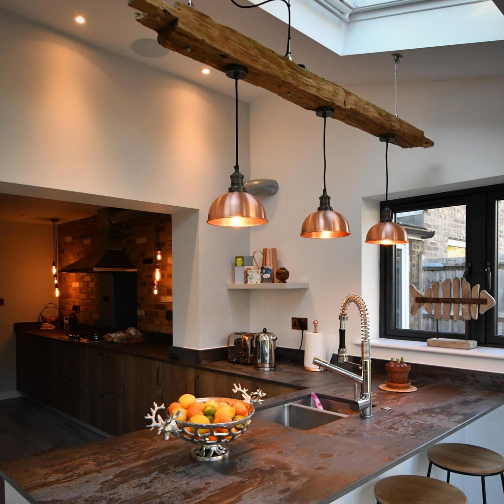 This handcrafted Brooklyn Dome Pendant Light is also available in a variety of finishes Brass & Pewter, Brass, Pewter and Copper & Pewter. It works particularly well when hung in rows of 3 or 5. You can personalise this product by choosing from an array of Pendant Holder finishes. The Dome Pendant also has a matching Brooklyn Wall Light in 8 Inch and Flush Mount available in 8 Inch and 13 Inch, meaning your interior design can remain consistent throughout your spaces. The Dome Pendant is also available in a larger 13 Inch size. This product comes with 1 M of Black Round Fabric Flex, which can be adjusted accordingly. Our Dome Lights are versatile products that can be used almost anywhere and will complement both classic and contemporary décor.