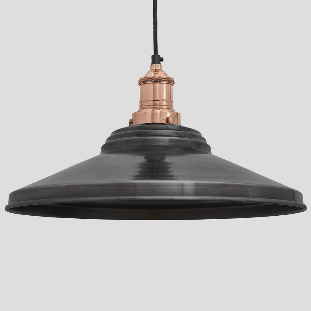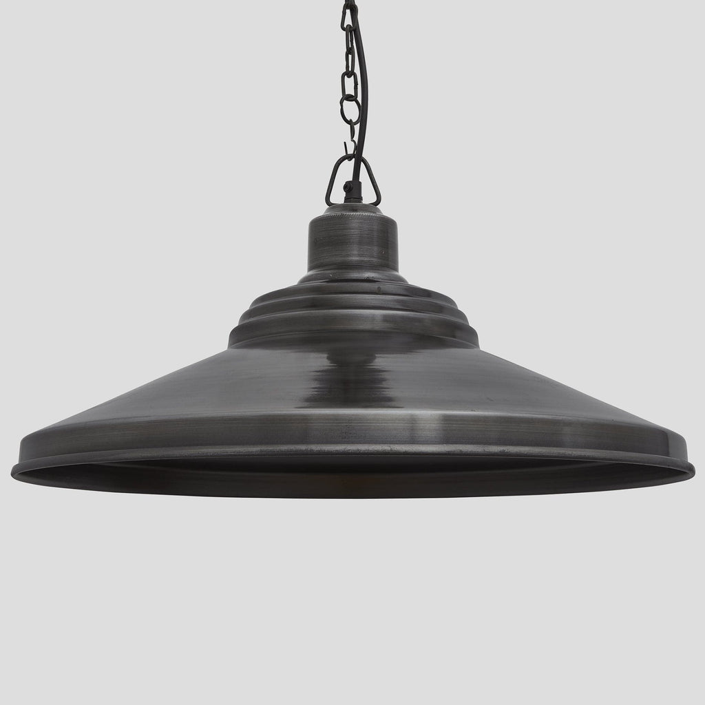 The Step 18 Inch Pendant is also available in Brass. This Light is also available as a Flush Mount. The versatile Light has a slightly smaller variation of 16 Inch pendant in Brass and Pewter and can be used together for the ultimate lighting combination. It looks great with a 1 M Black Round Fabric Flex and can be used to become the centrepiece of any space.