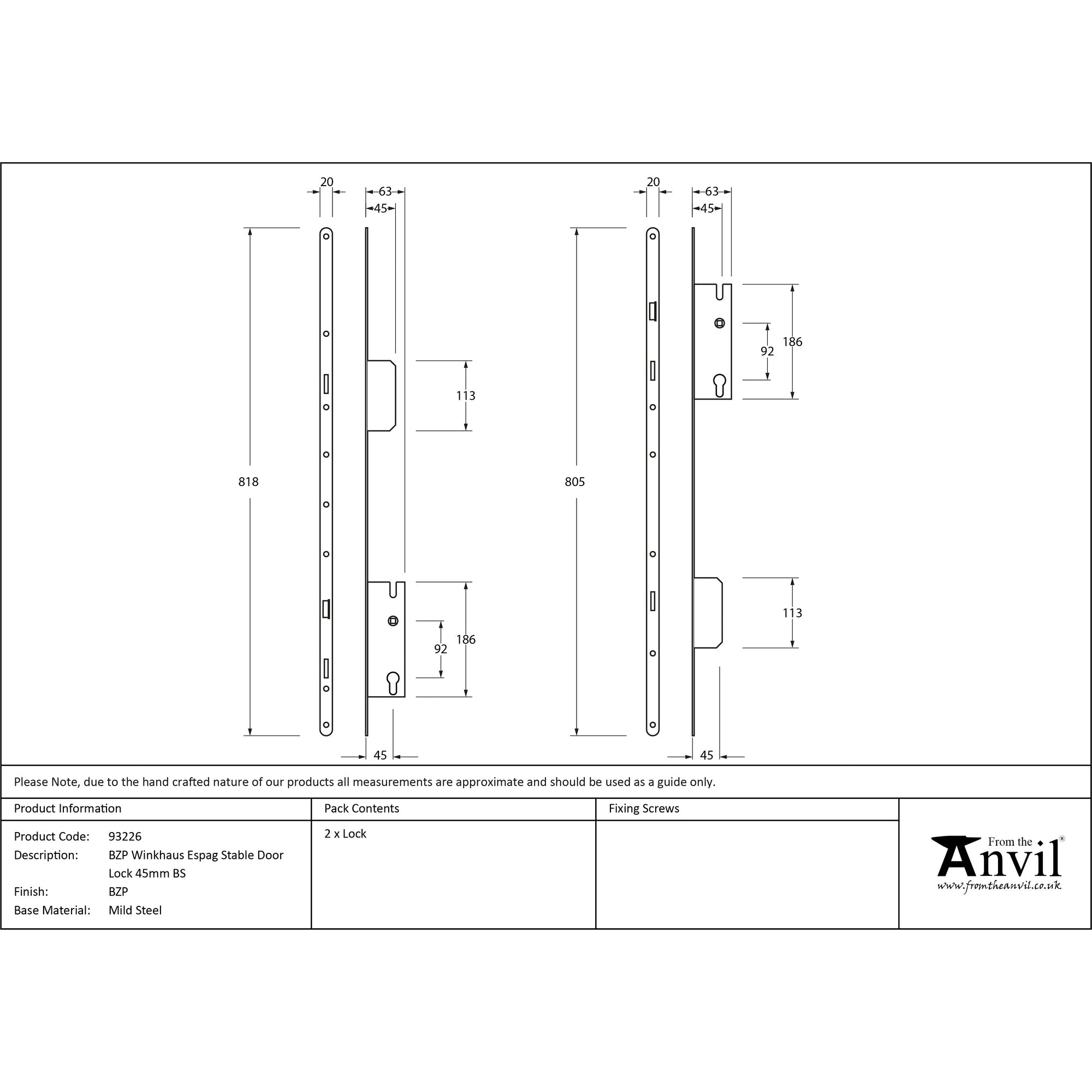 BZP Winkhaus Espag Stable Door Lock 45mm BS | From The Anvil