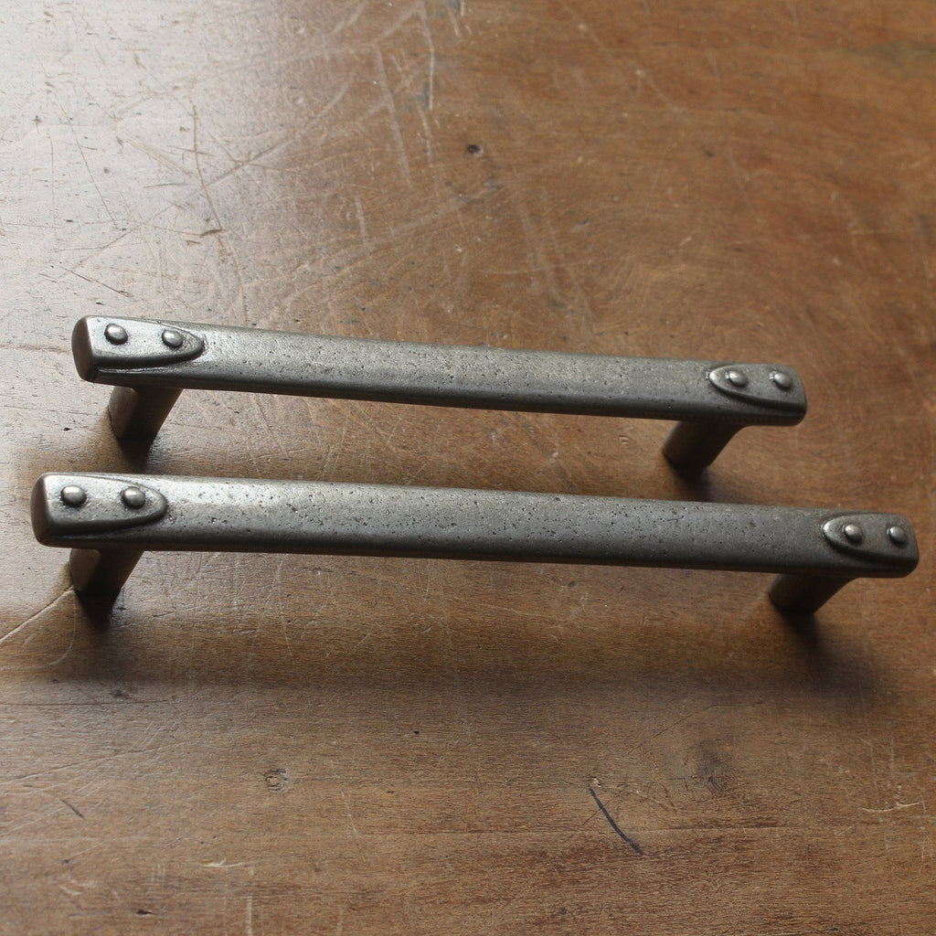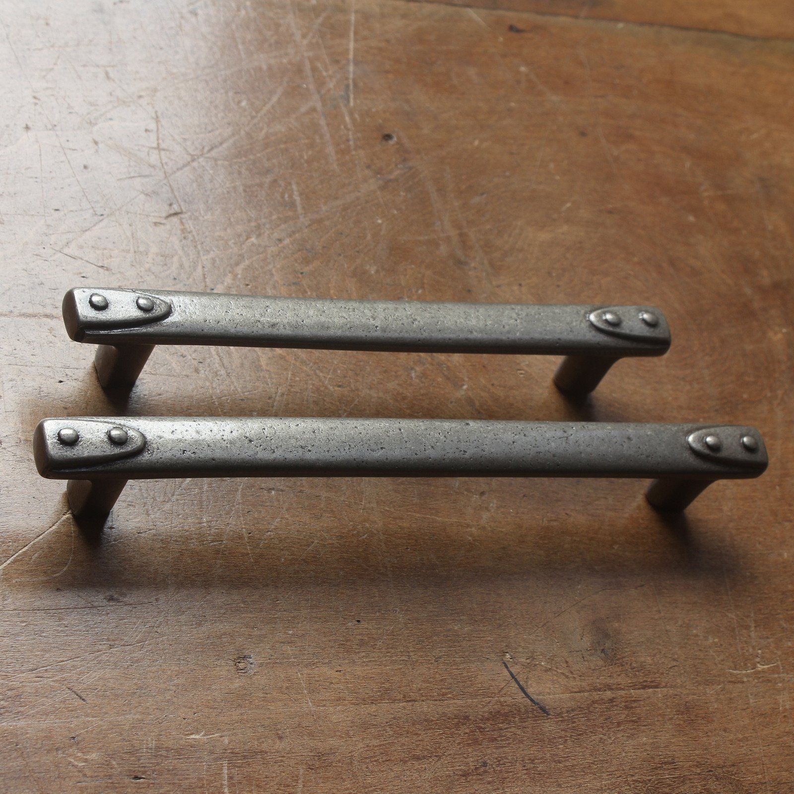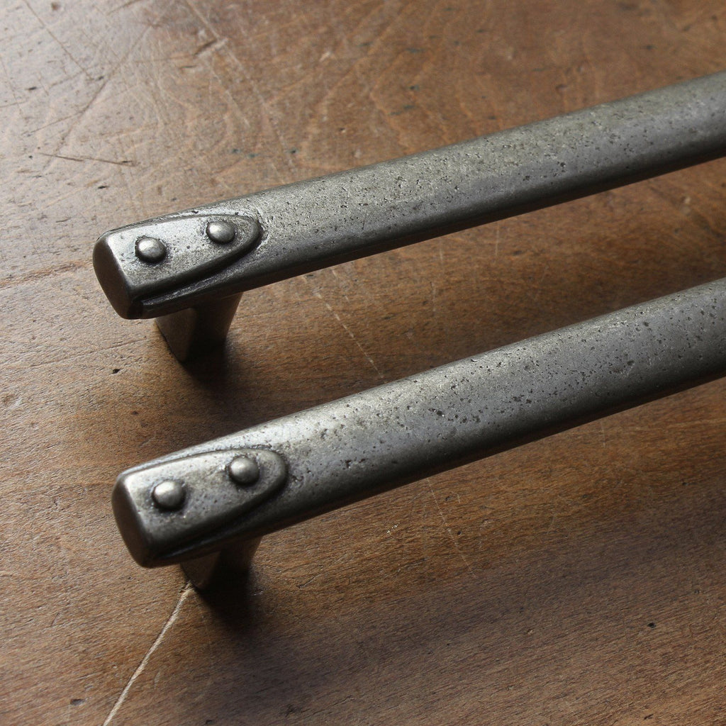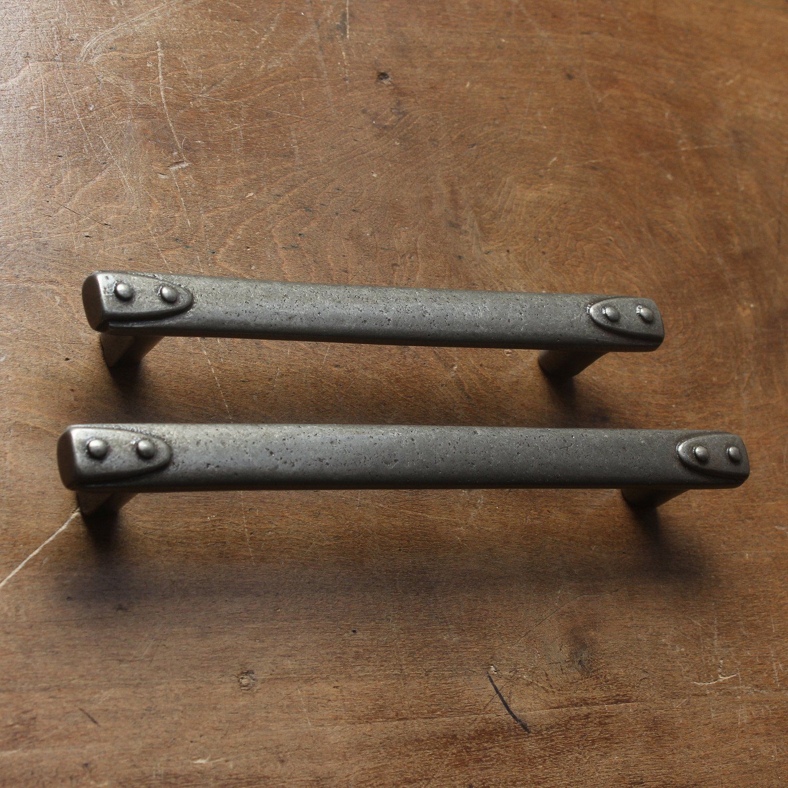 This solid cast iron pull handle will add an industrial feel to you cupboard doors and drawers. Inspired by old riveted handles, this pull handle will give your kitchen that old factory feel whilst being pleasant and interesting on the eye.