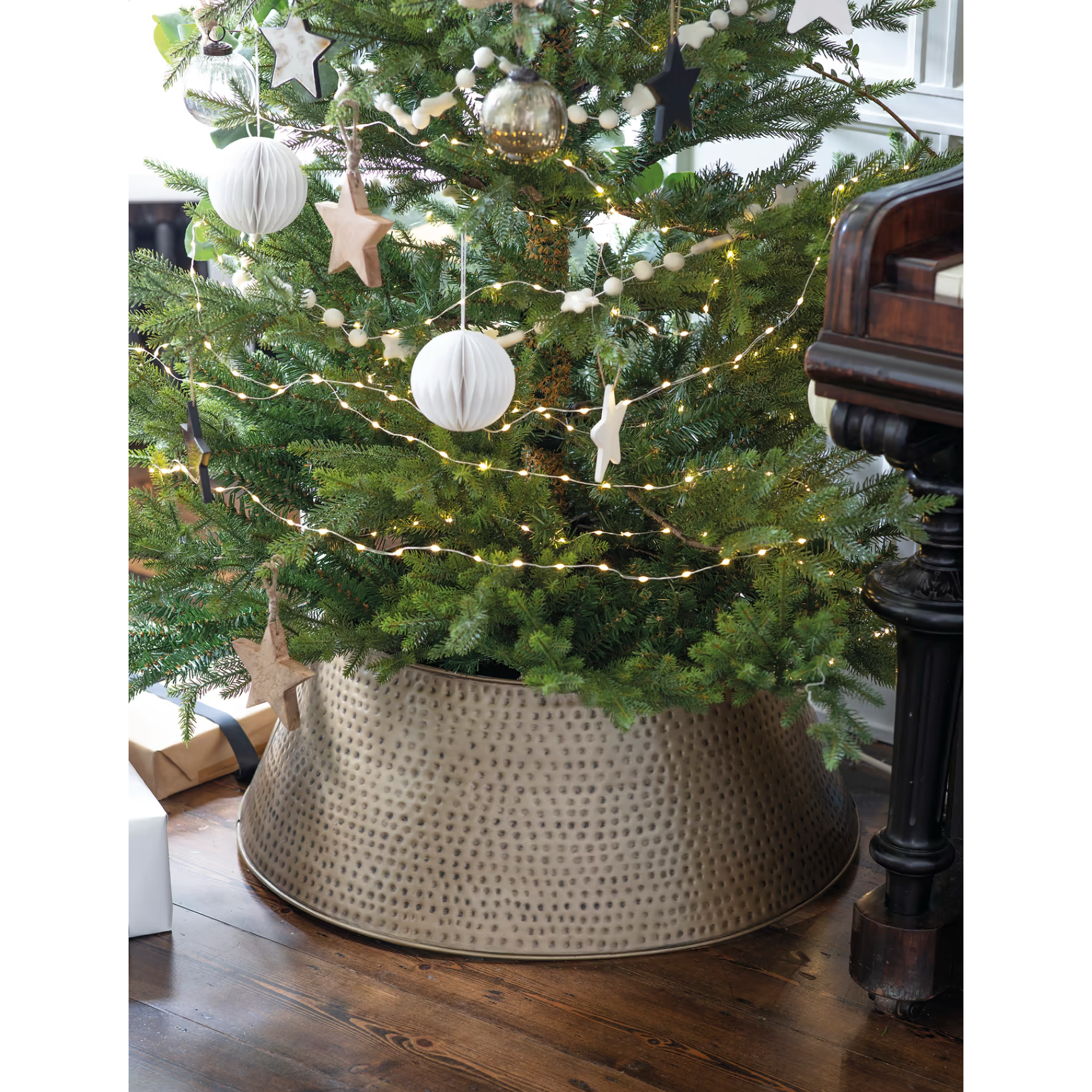Let's not skirt around the subject, we think every home needs one of these. To add a bit of glitz to the somewhat unattractive bottom of the Christmas Tree. The circular steel skirt has a luxury hammered finish in a choice of Antique Brass or Antique Pewter, that we just can't keep our eyes off. It is Christmas yet?