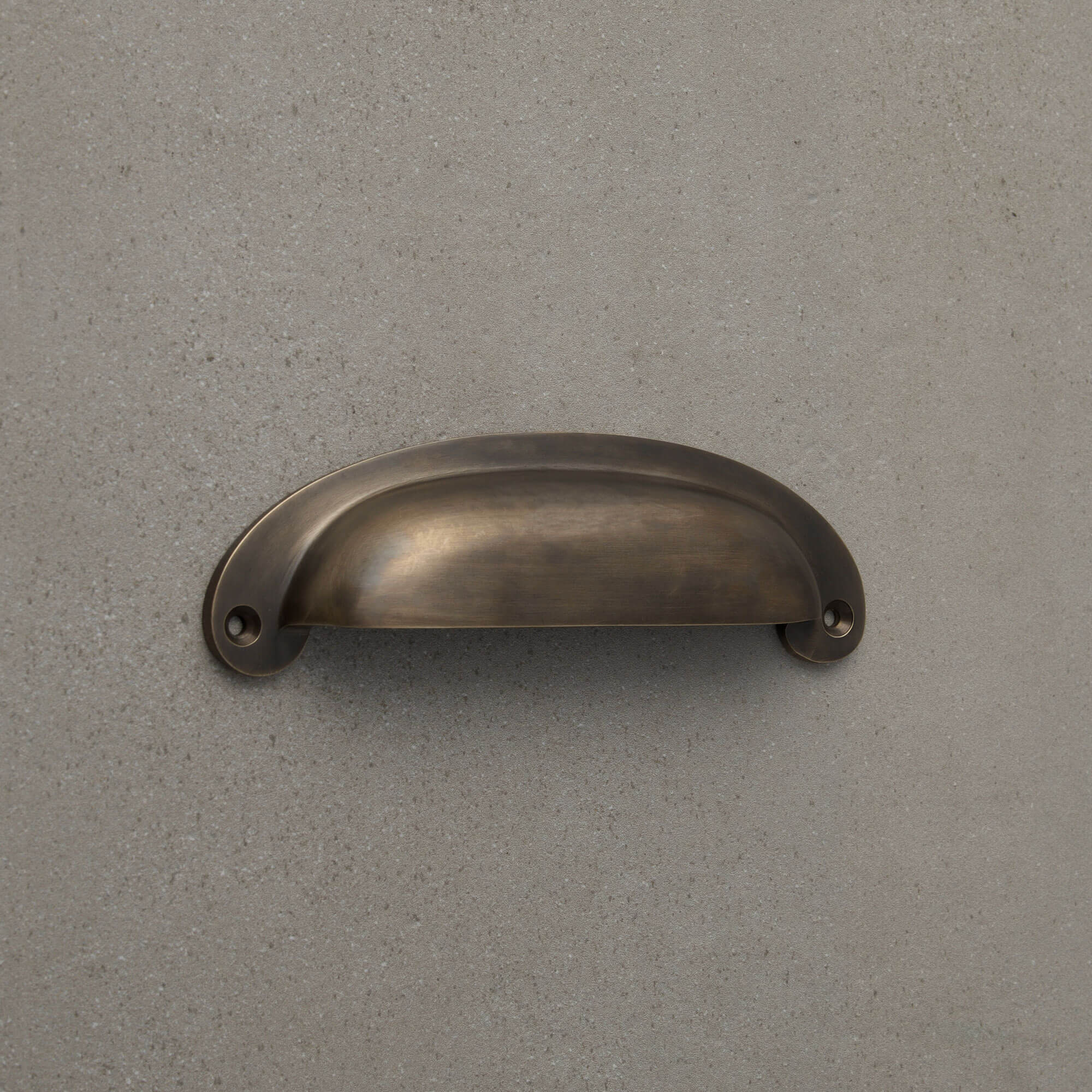Made from solid cast brass, polished and then aged by hand with a dark patination that will continue to age over time. This is a living finish that will change due to the environment and use. To prevent this simply apply a clear furniture wax to each handle by hand periodically. To clean simply wipe with a slightly damp lint-free cloth and dry immediately, never use any chemicals on these handles.