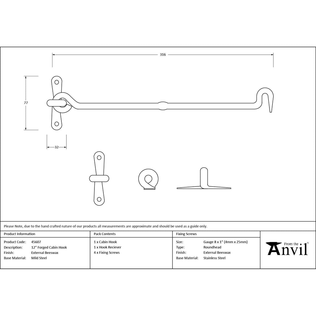 External Beeswax 12" Forged Cabin Hook | From The Anvil
