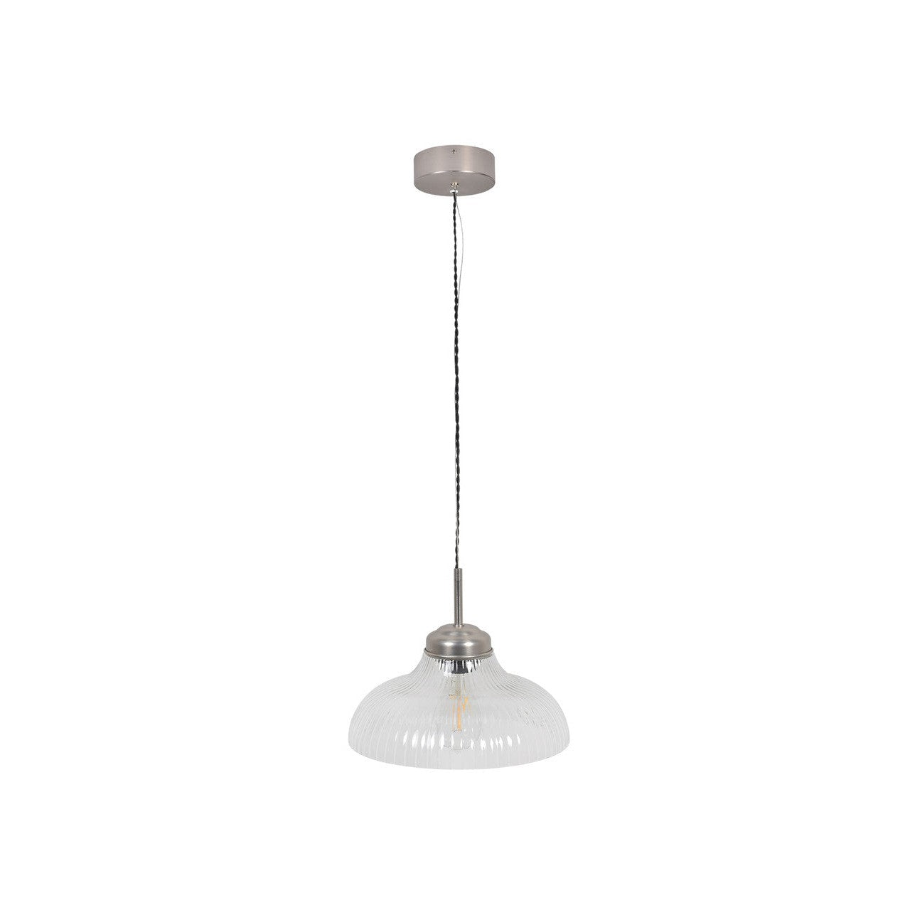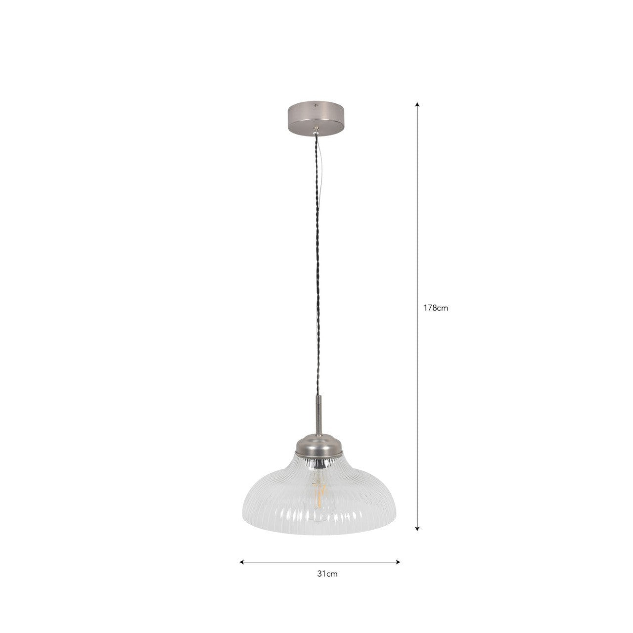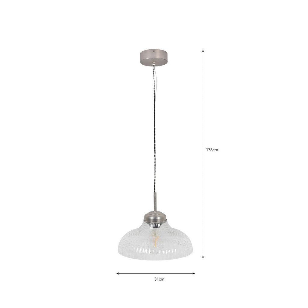 Crafted from hand-blown glass, our Fovant Glass Pendant Light is a slightly scaled down version of its larger sibling, but with a curved rather than domed neck shape. Finished with satin nickel coated steel fixings, this vintage-inspired pendant light has a sophisticated ribbed detail and would look stunning placed over a dining table or kitchen island.