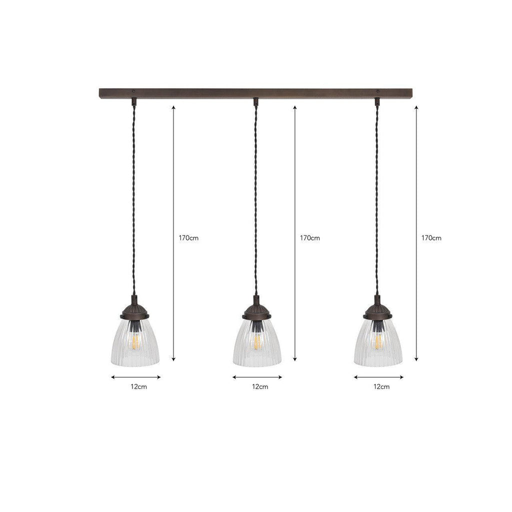 Fovant Glass Triple Pendant Light | Antique Bronze