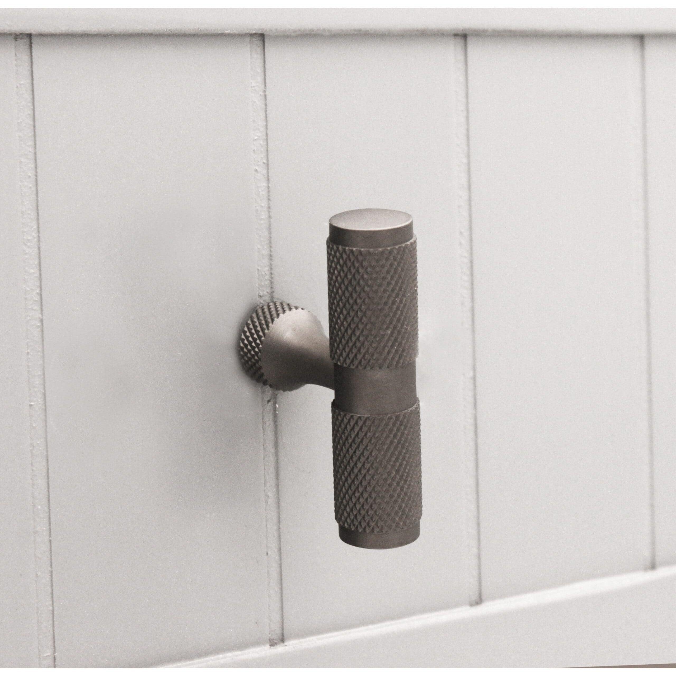 Knurled T bar Cupboard Pull Gunmetal Grey