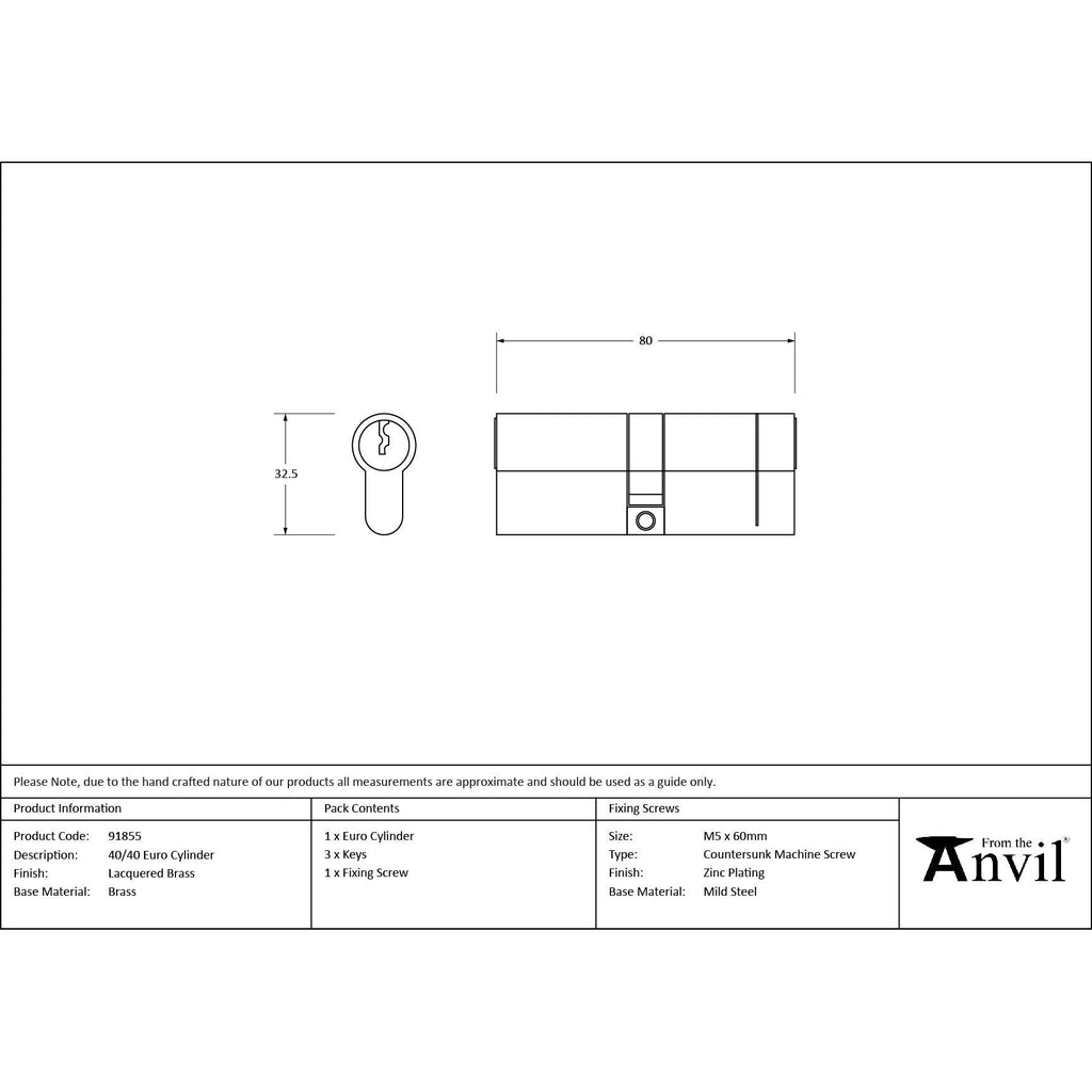 Lacquered Brass 40/40 Euro Cylinder | From The Anvil