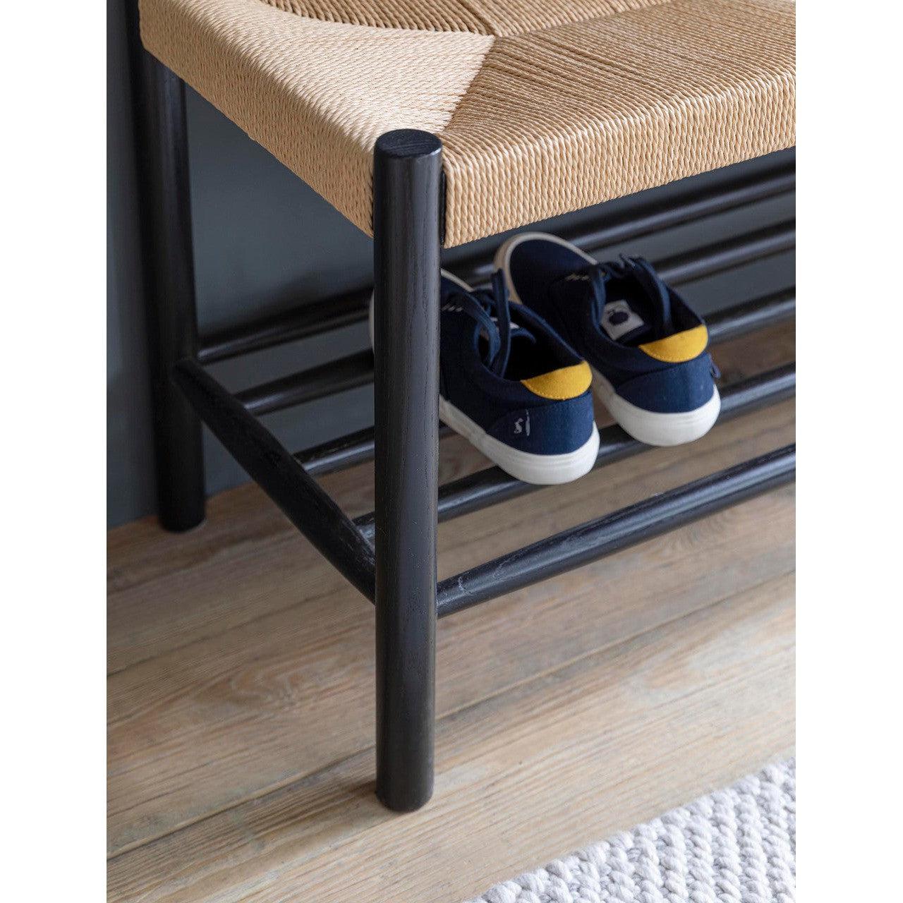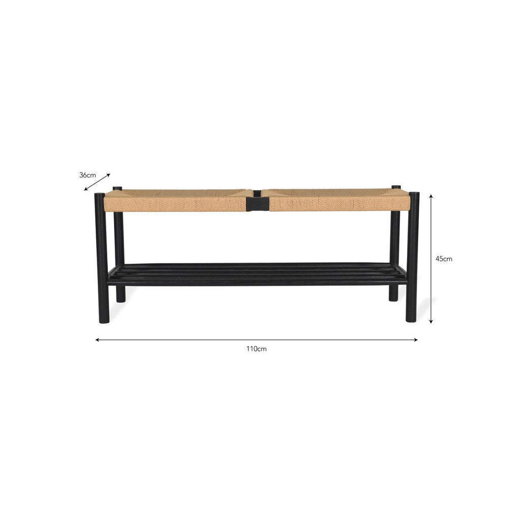 Undeniably timeless with a Scandinavian touch, the Longworth Hallway Bench is perfect for creating much needed seating and storage throughout the home. Crafted with an Oak frame and lower shelf, the seat is produced from twisted papercord which is extremely tough and strong. Available in either Black or Natural. Matching in design to our bestselling Longworth Chair, this two seater bench is perfect for small spaces for use at the foot of a bed, under a window or in the hallway. Its elegant proportions will add a touch of grace to any home and keep clutter at bay.