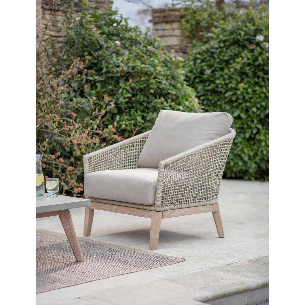 For unbeatable style and comfort for any outdoor living space, look no further than our Lynton Armchair. With its comfy grey-coloured seat pad and cushion, it's a chair for unwinding in on a summer's afternoon and works well on a patio, decking area or verandah.