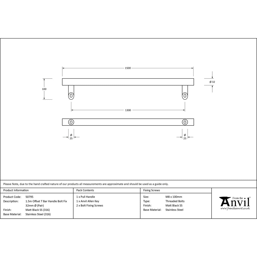 Matt Black (316) 1.5m Offset T Bar Handle Bolt Fix 32mm Ø | From The Anvil