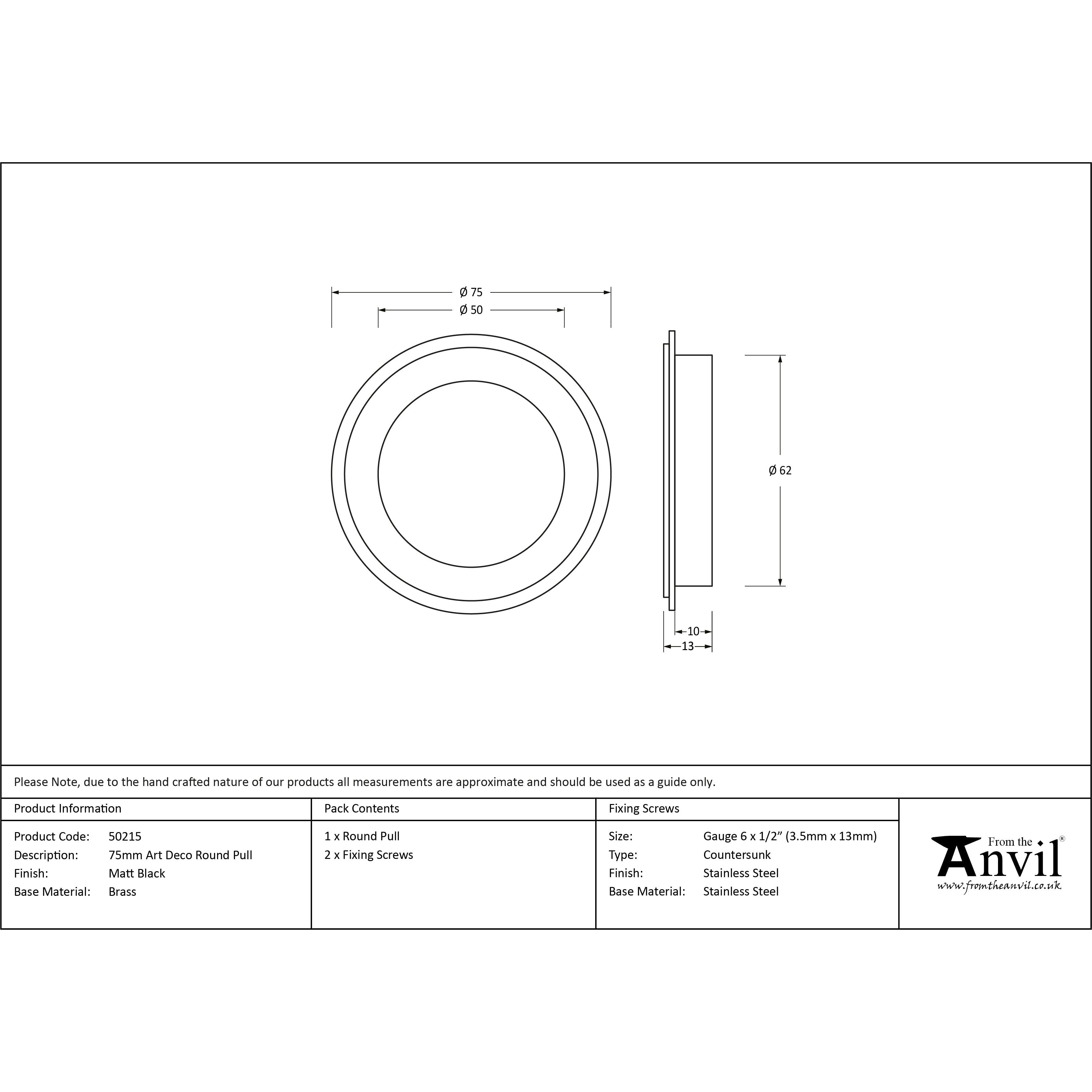 Matt Black 75mm Art Deco Round Pull | From The Anvil