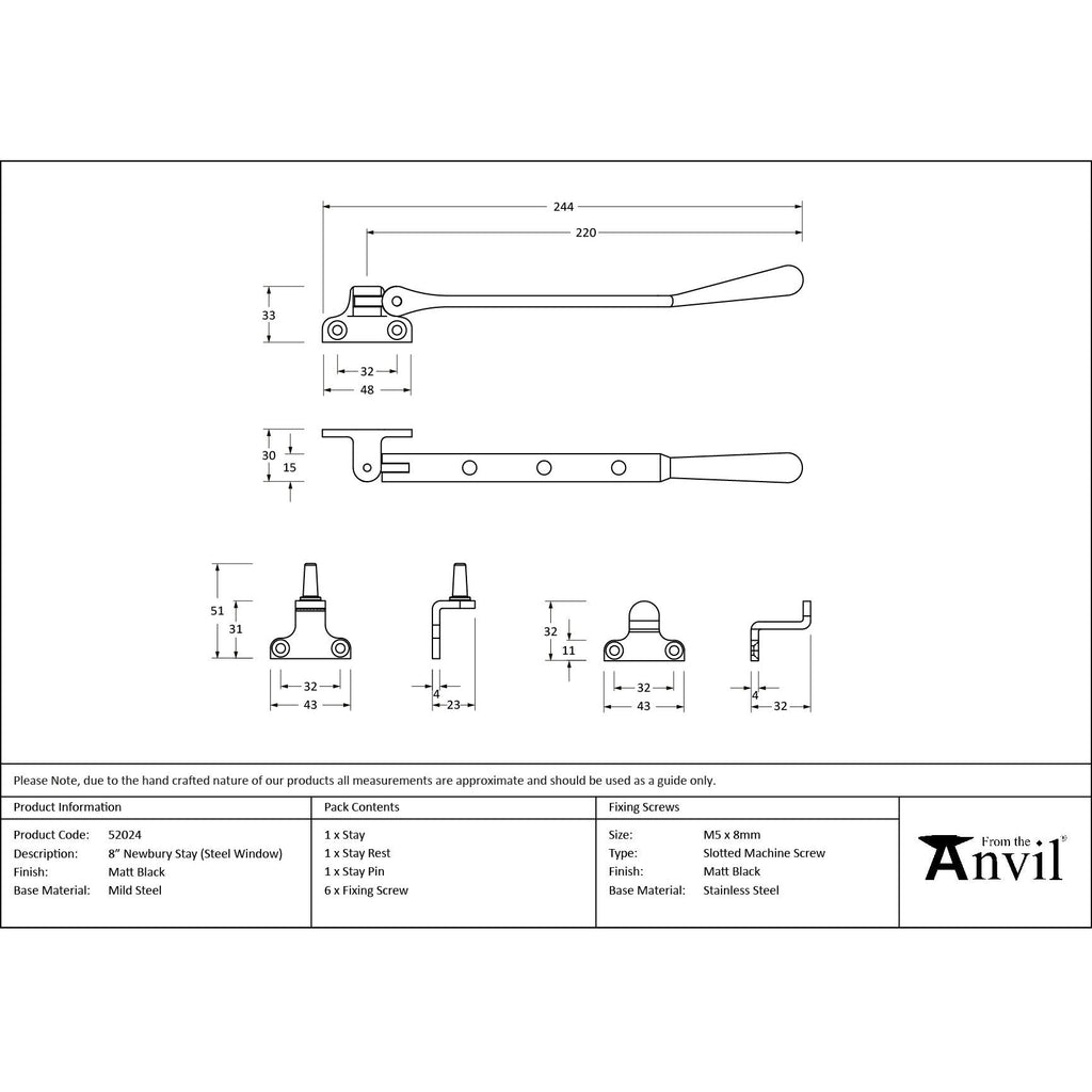 Matt Black 8" Newbury Stay (Steel Window)