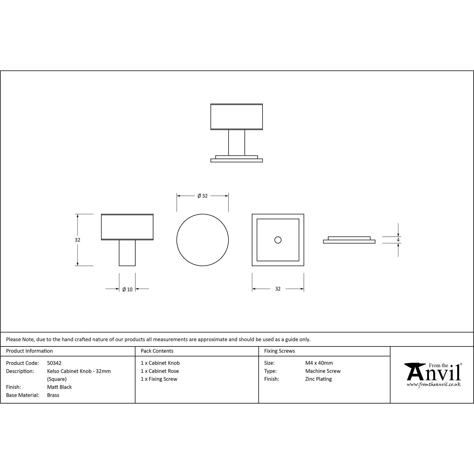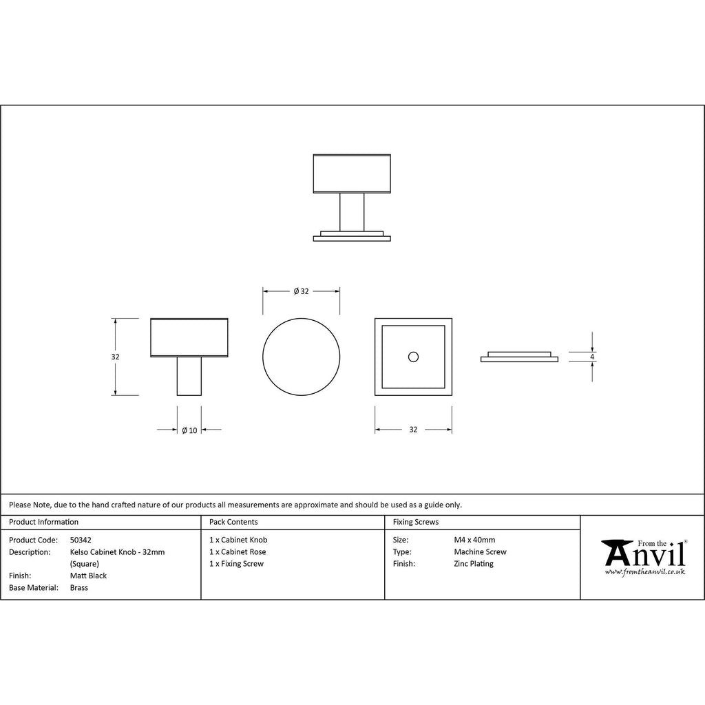 Matt Black Kelso Cabinet Knob - 32mm (Square) | From The Anvil