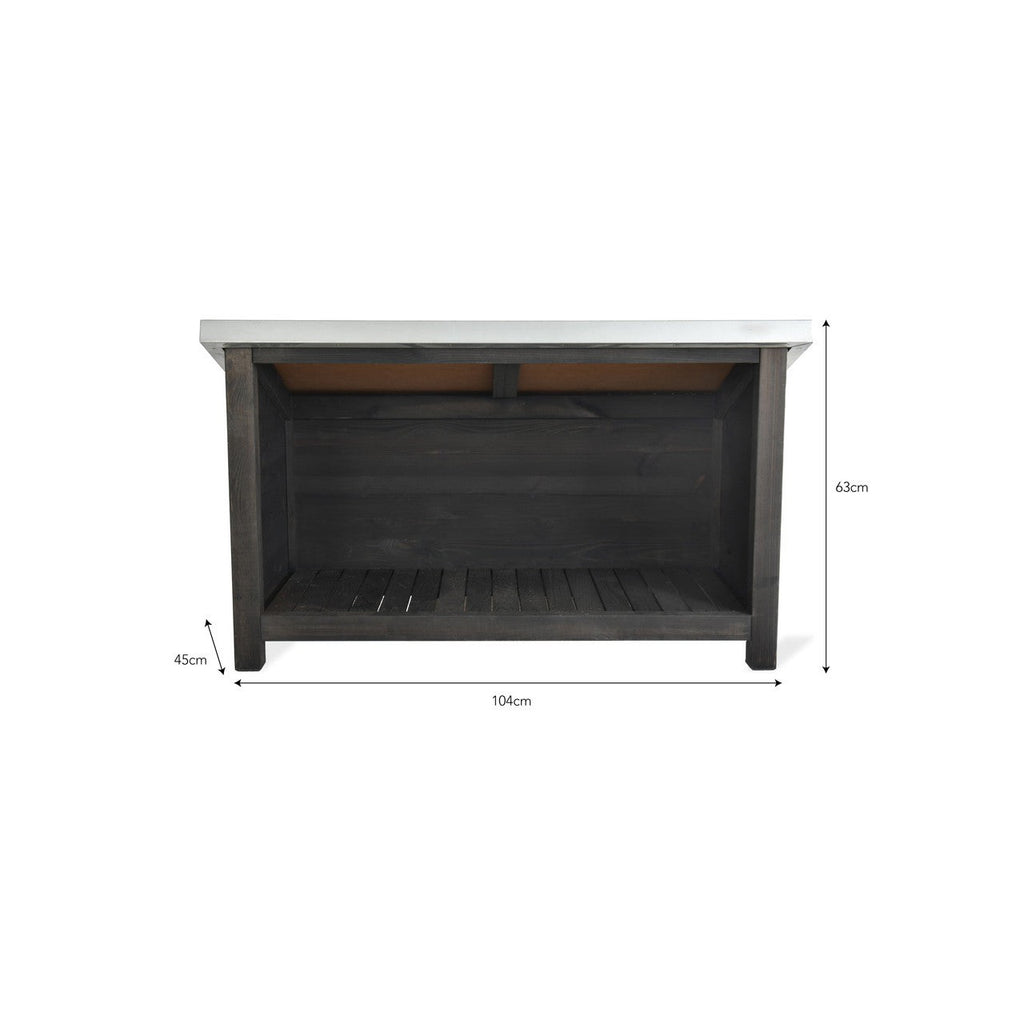 The unit is finished with a slanted Galvanised Sheet Metal roof, allowing any moisture to run off easily making it just as suitable for storing logs or parcels before they get transported inside.