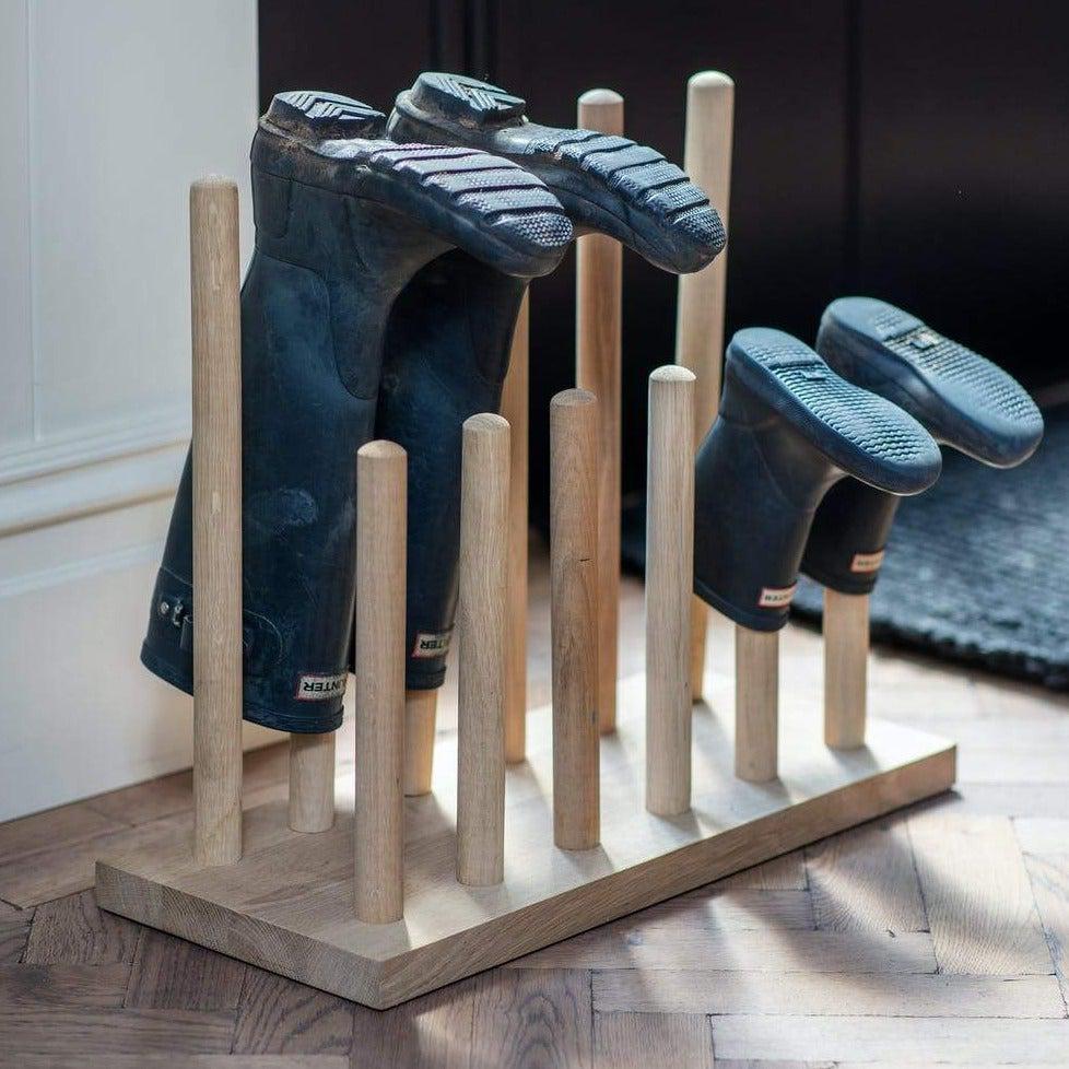 Simple yet super practical in design, the Hambledon Welly Stand is the perfect boot room accessory. With space for up to six pairs, turn them upside down after use to dry on the natural oak poles and keep that mud away from clean floors.