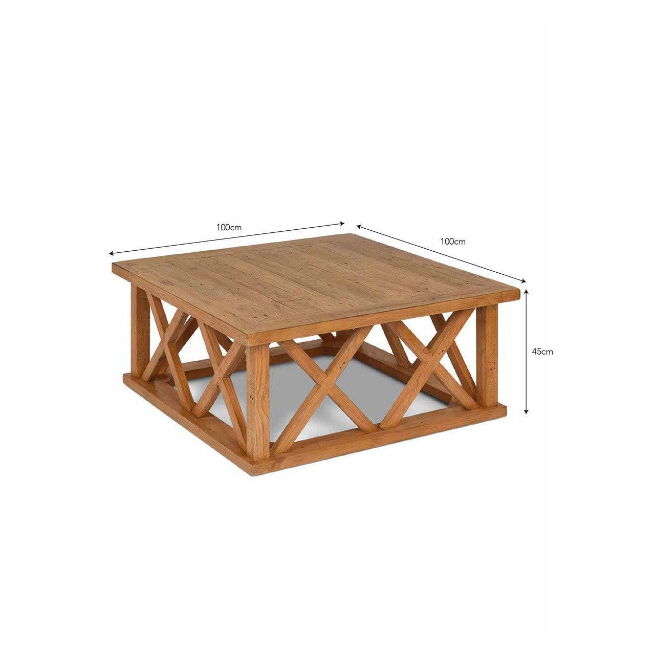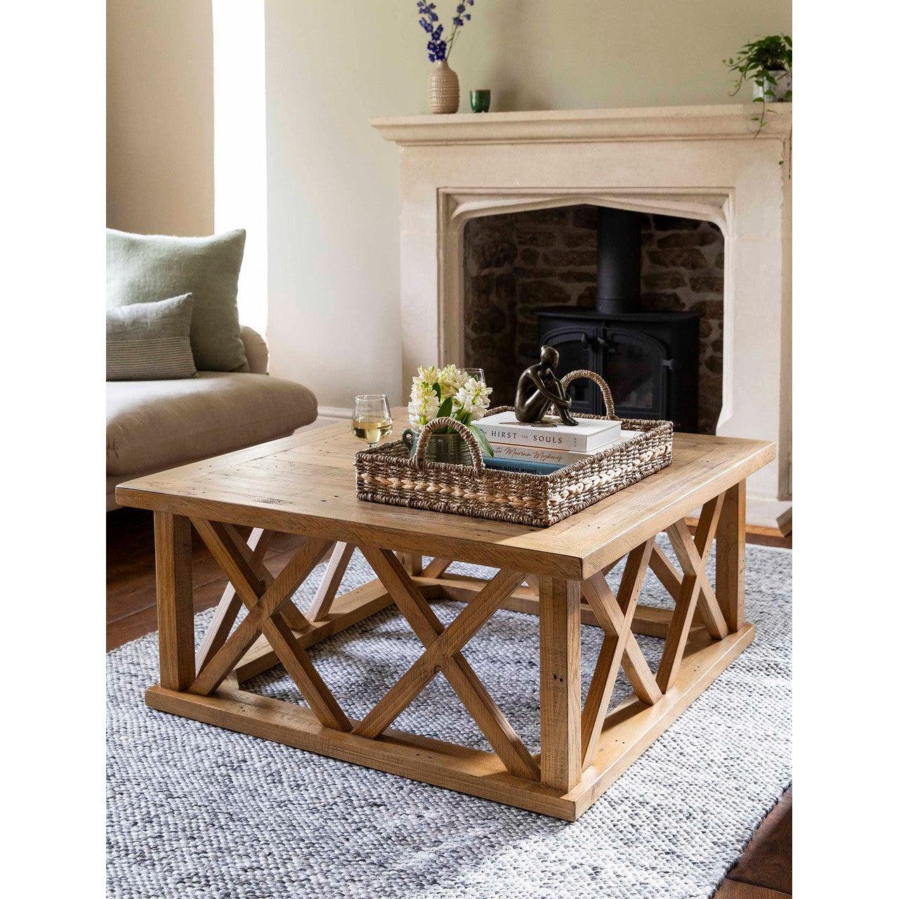 With its striking criss-cross design, our Oxhill Coffee Table is guaranteed to make a statement in a living room. Beautifully made from reclaimed pine with a light stain, this square coffee table has plenty of room for styling with large books, candles and other finishing touches for a magazine-worthy aesthetic. Complete the look by placing it on a large rug and pairing it with one of our matching Oxhill Console Tables.