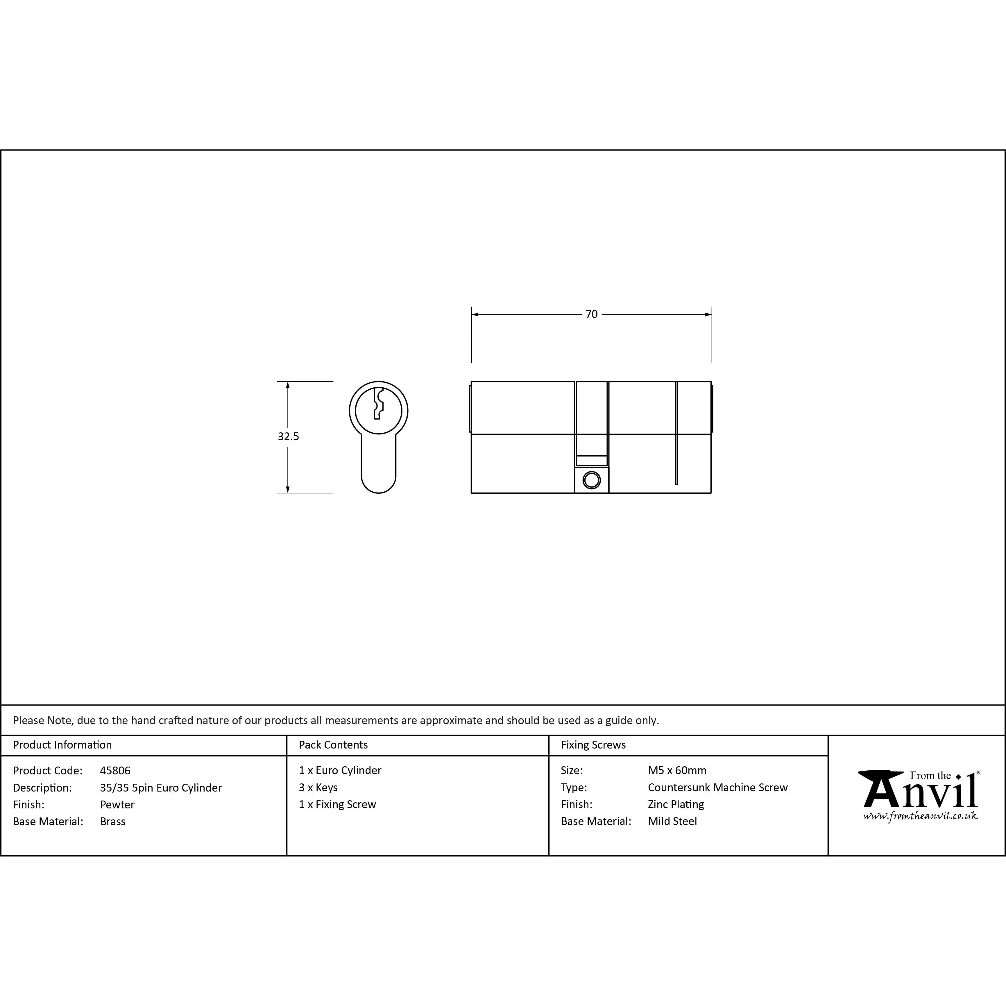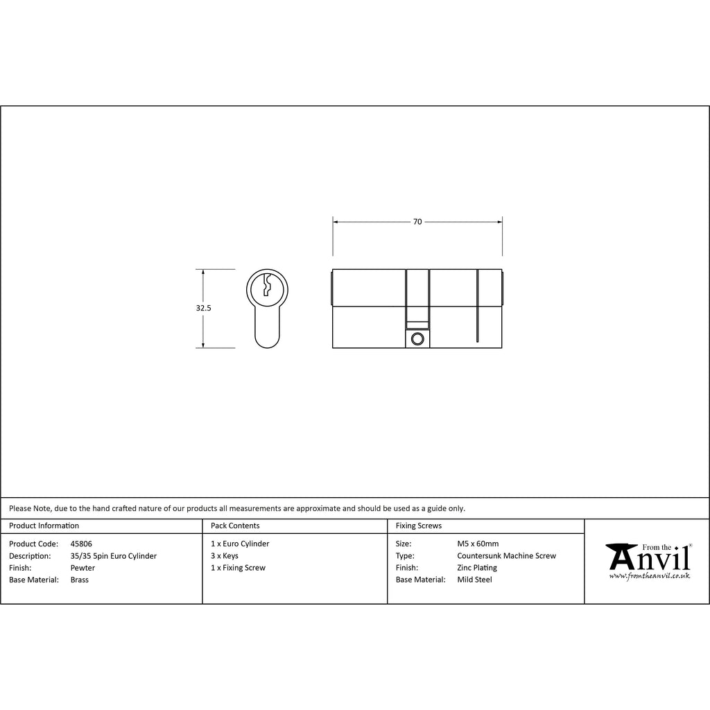 Pewter 35/35 5pin Euro Cylinder | From The Anvil