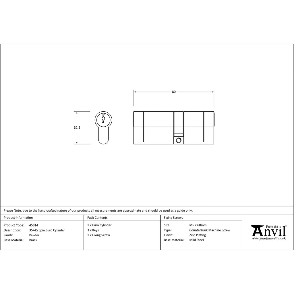 Pewter 35/45 5pin Euro Cylinder | From The Anvil