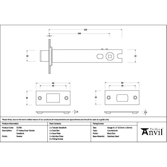 Pewter 5" Heavy Duty Tubular Deadbolt