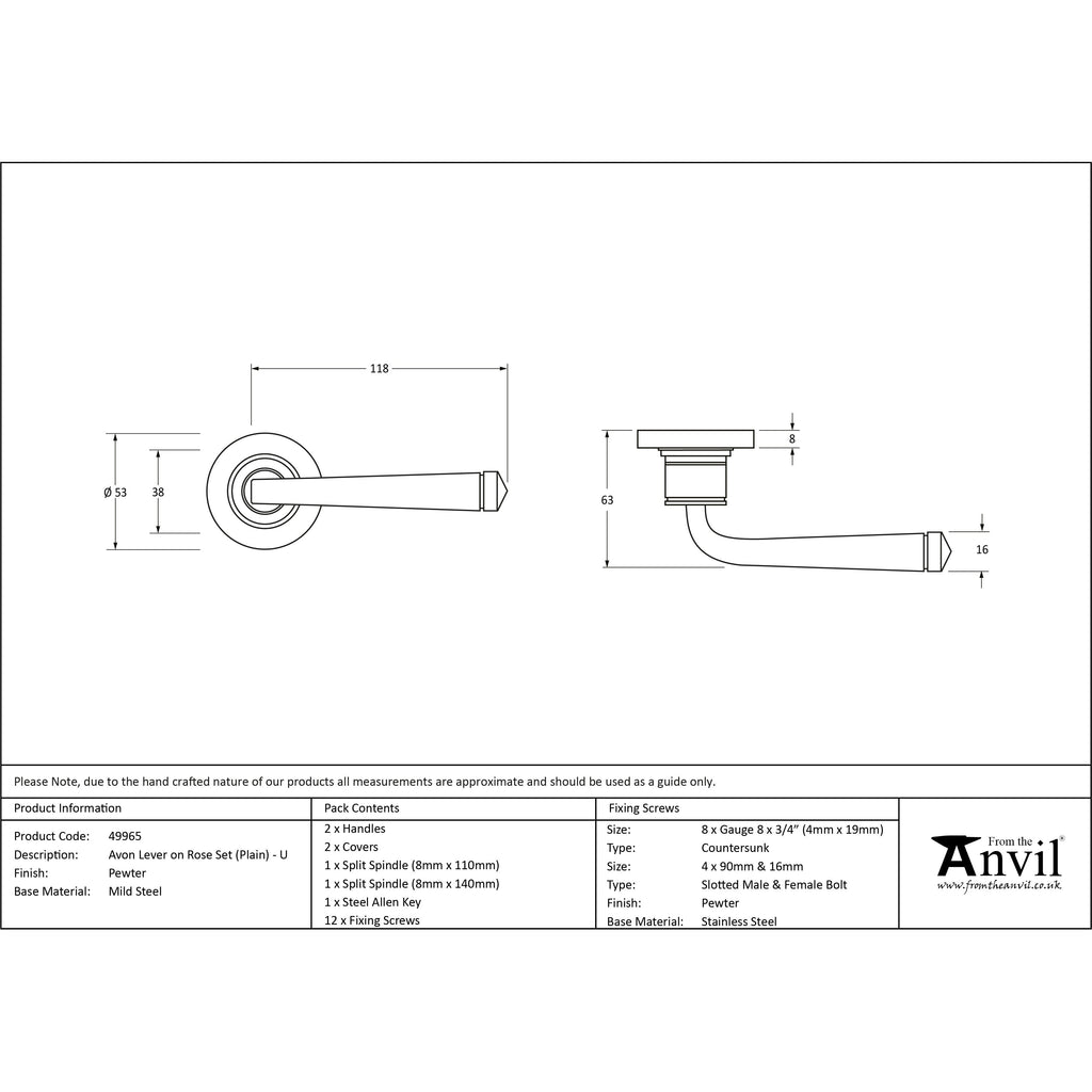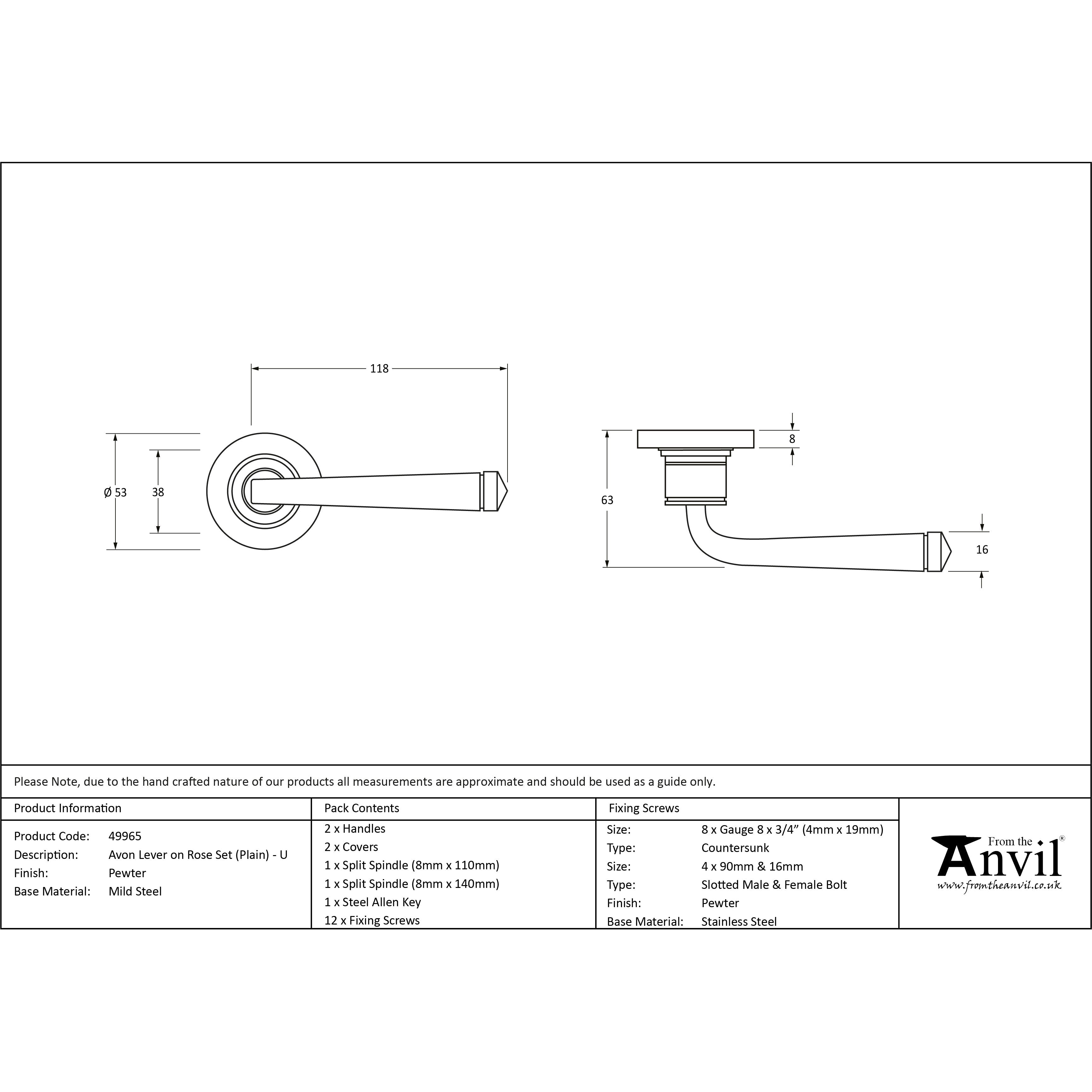 Pewter Avon Round Lever on Rose Set (Plain) - Unsprung | From The Anvil