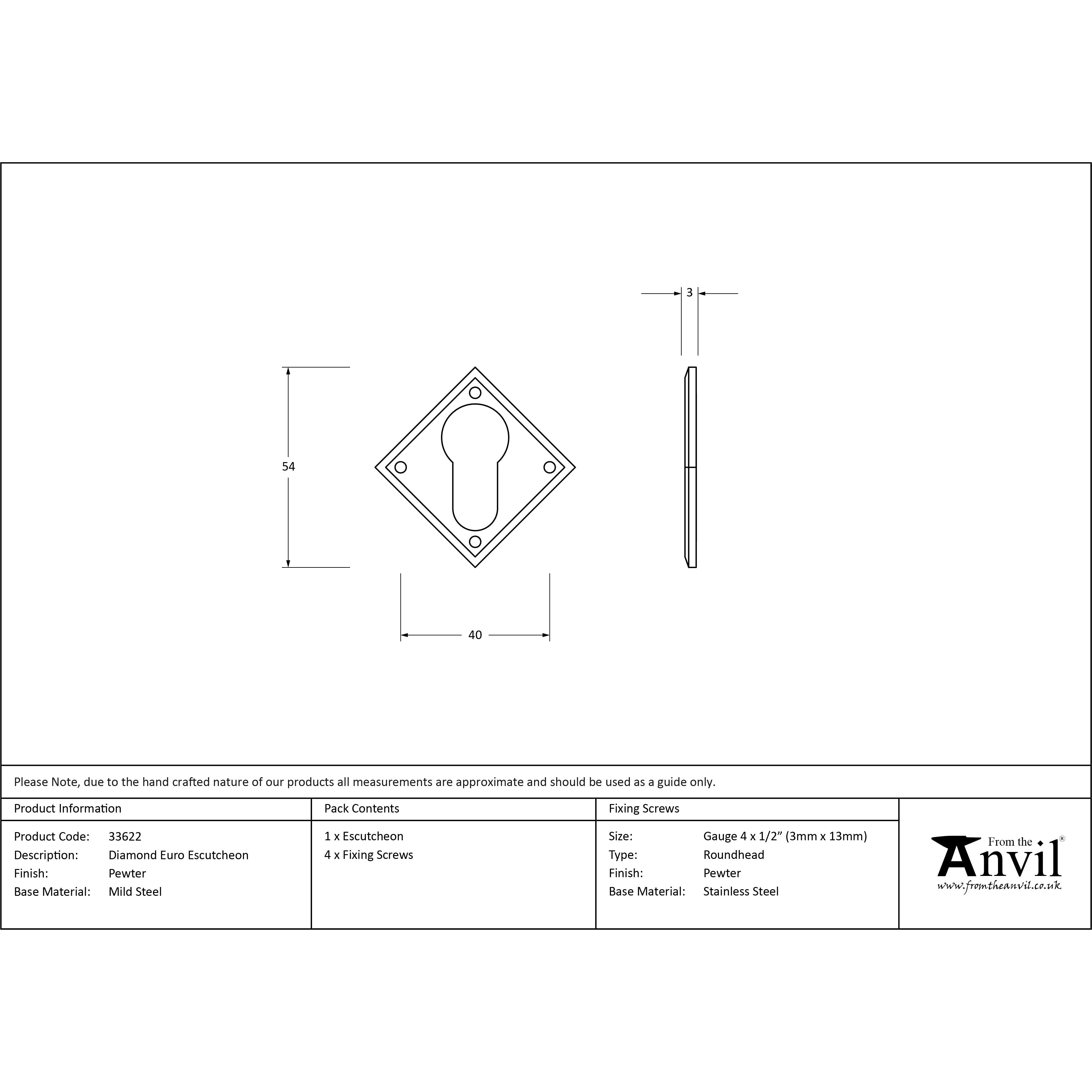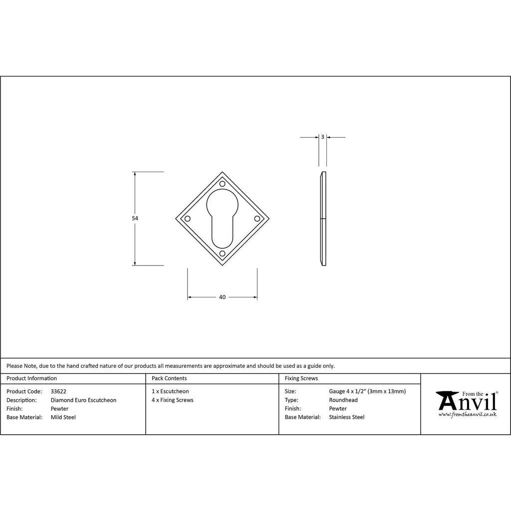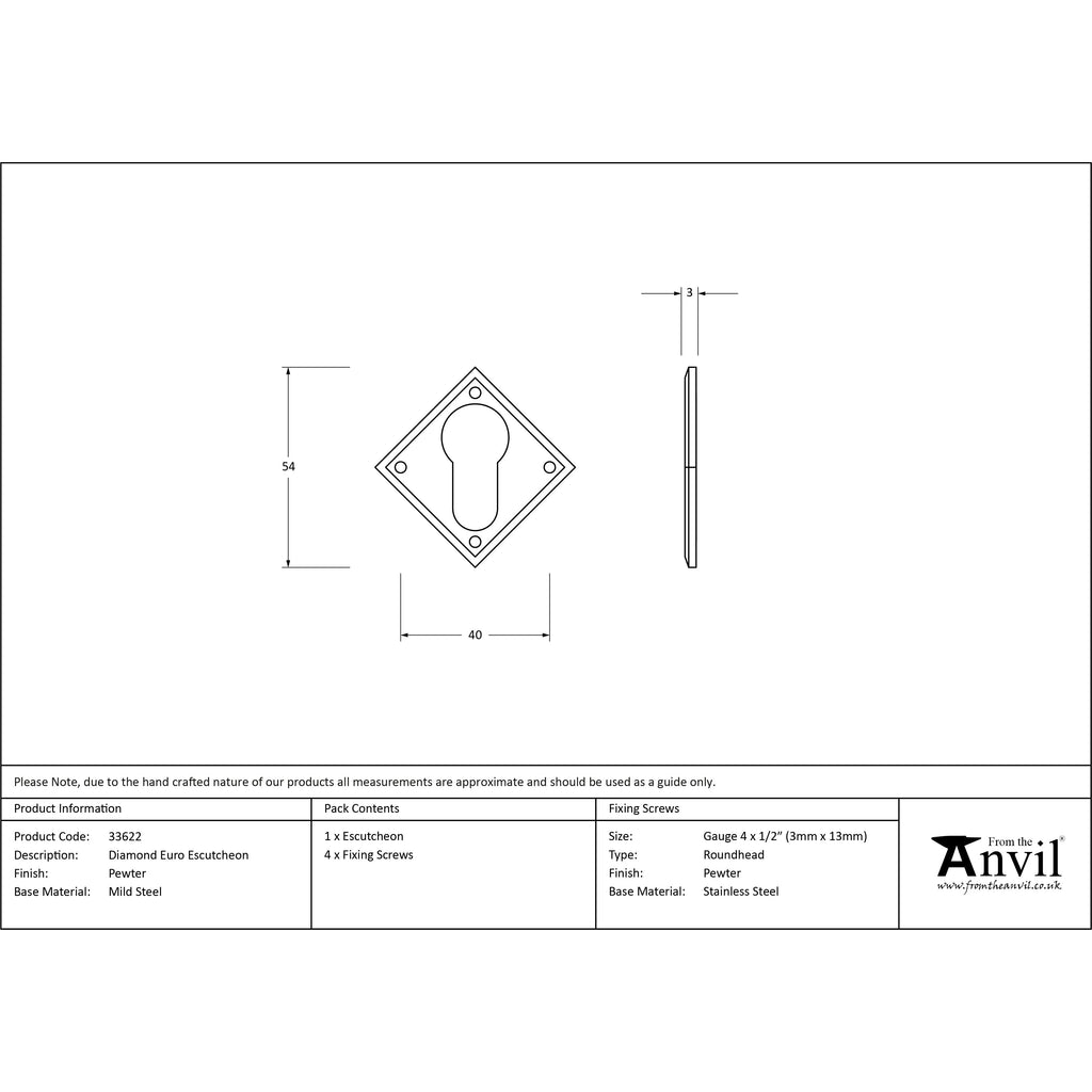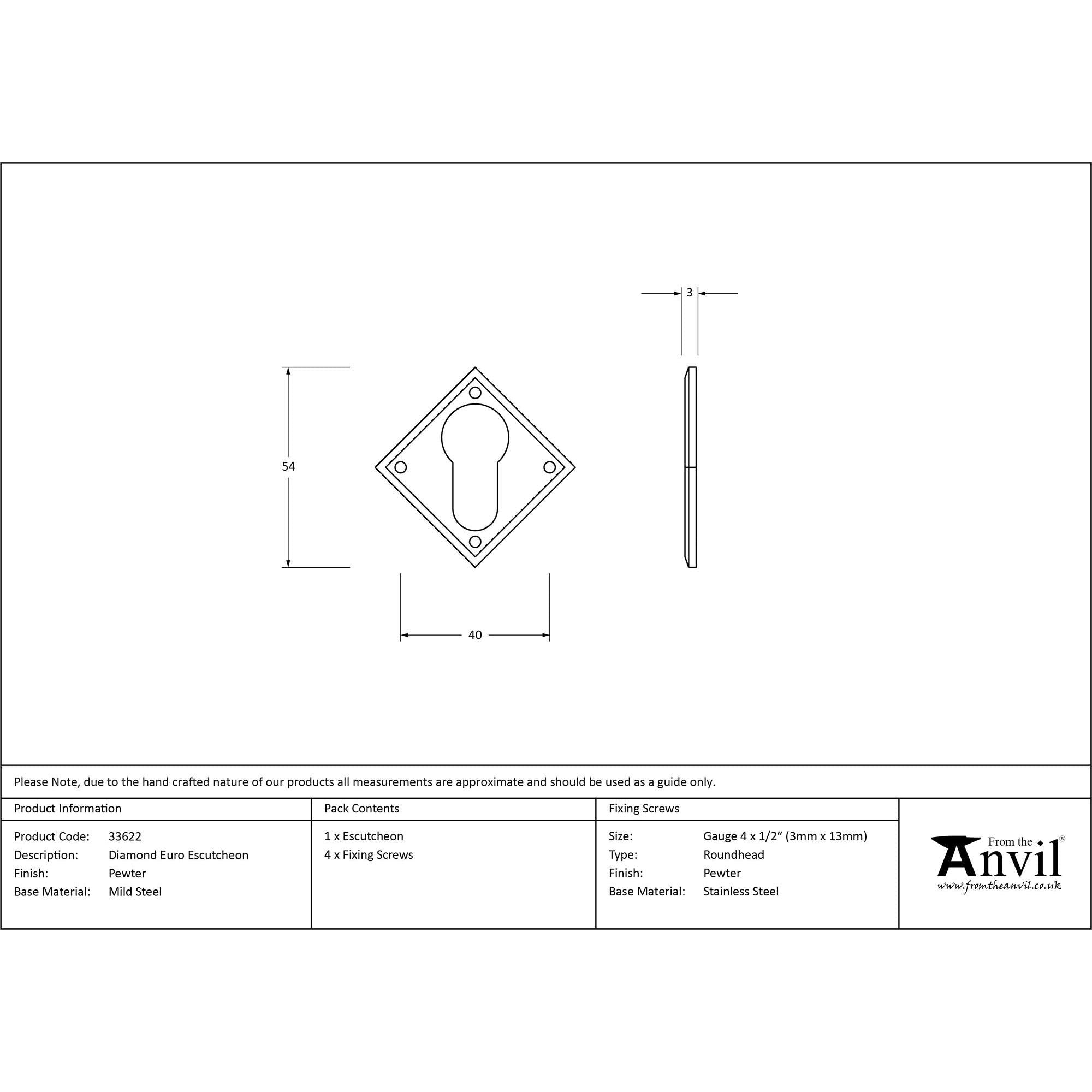 Pewter Diamond Euro Escutcheon | From The Anvil
