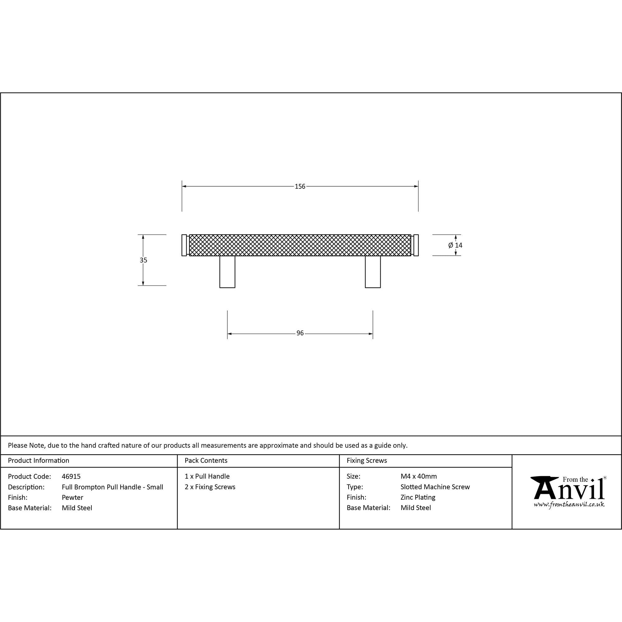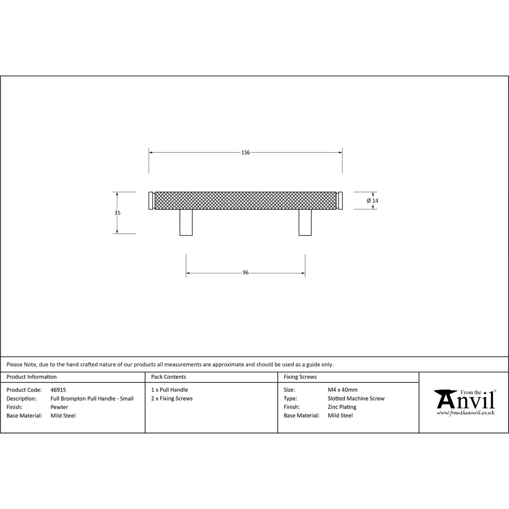 Pewter Full Brompton Pull Handle - Small | From The Anvil