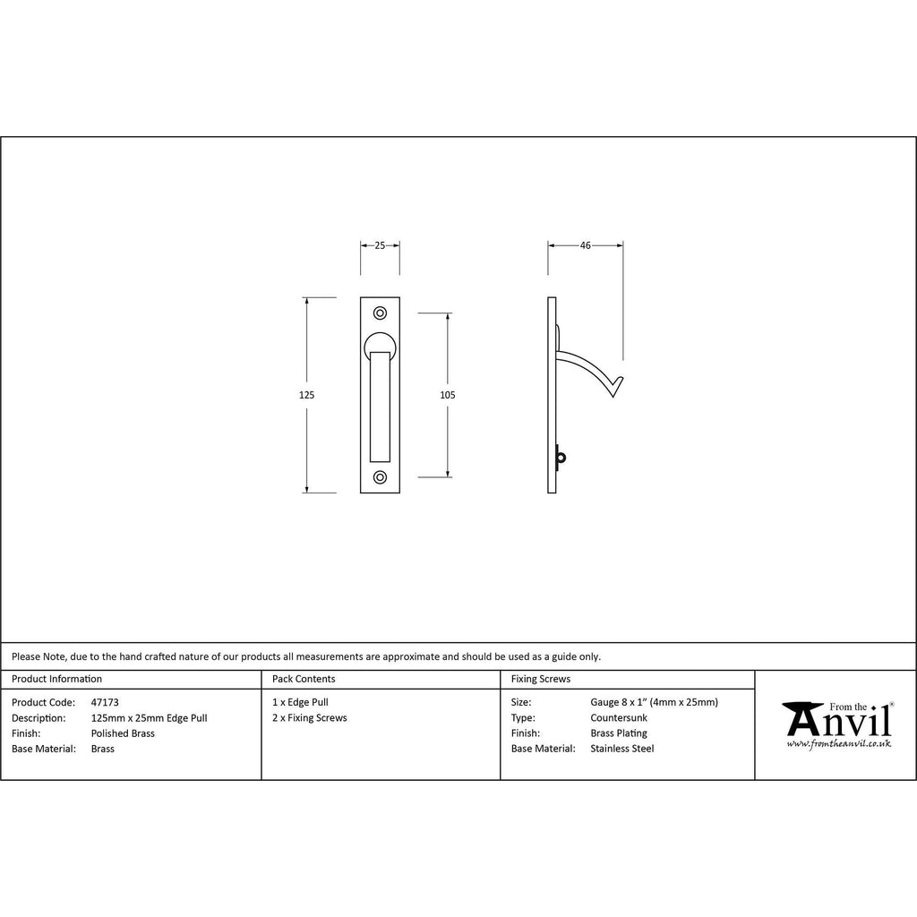 Polished Brass 125mm x 25mm Edge Pull | From The Anvil