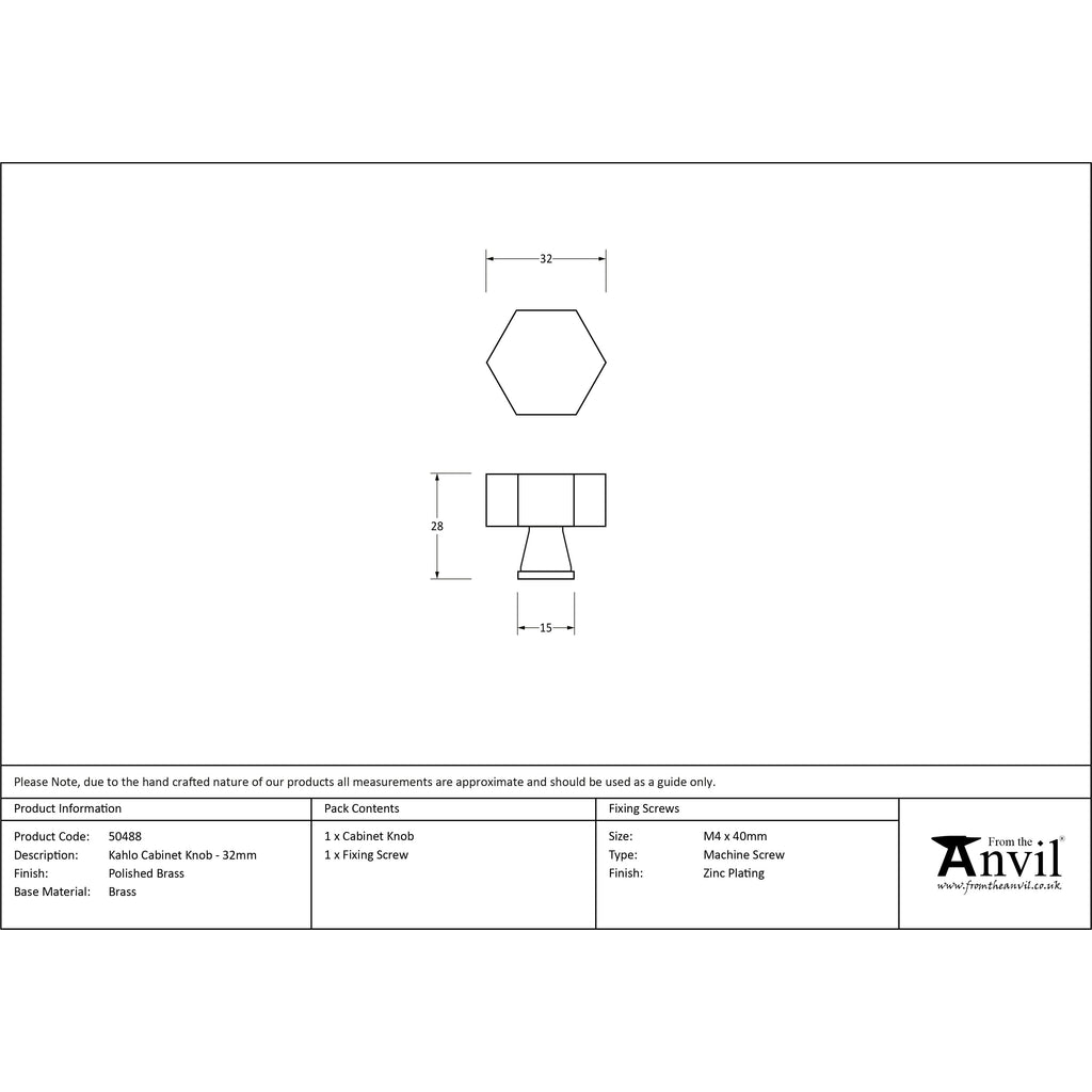 Polished Brass Kahlo Cabinet Knob - 32mm | From The Anvil