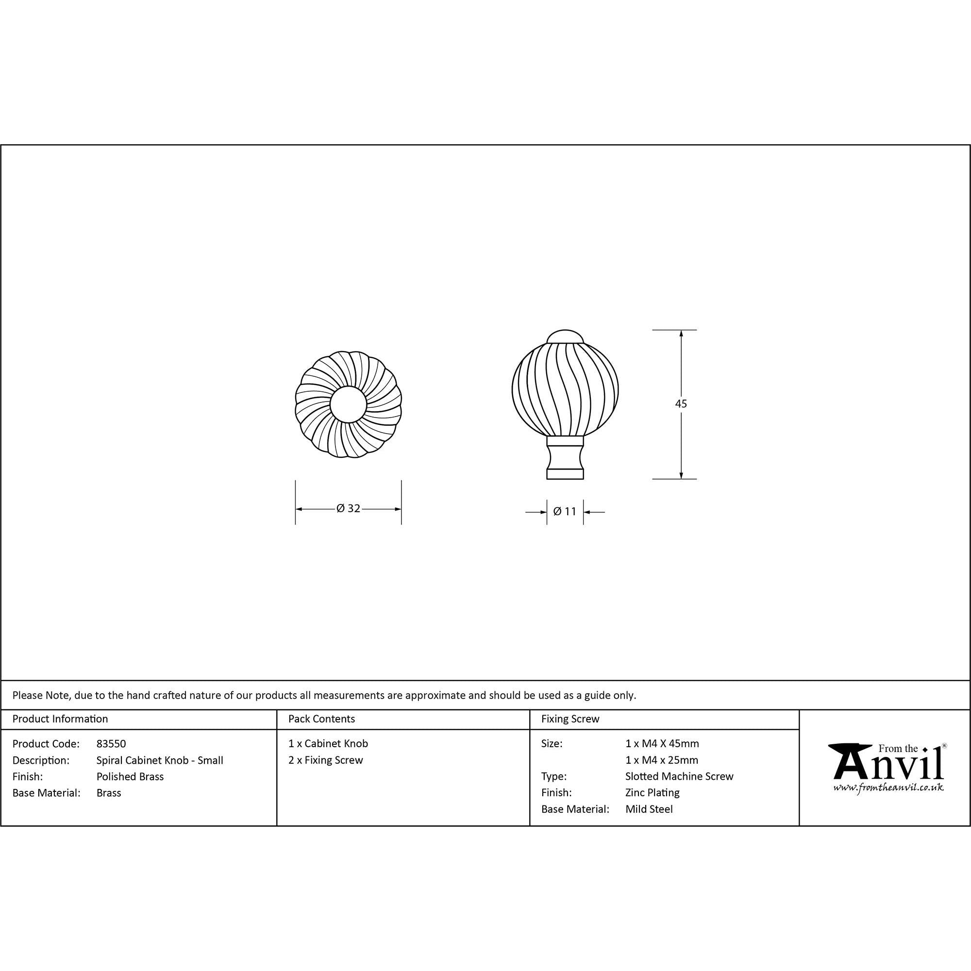Polished Brass Spiral Cabinet Knob - Small | From The Anvil