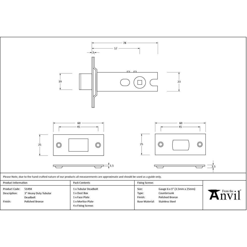 Polished Bronze 3" Heavy Duty Tubular Deadbolt