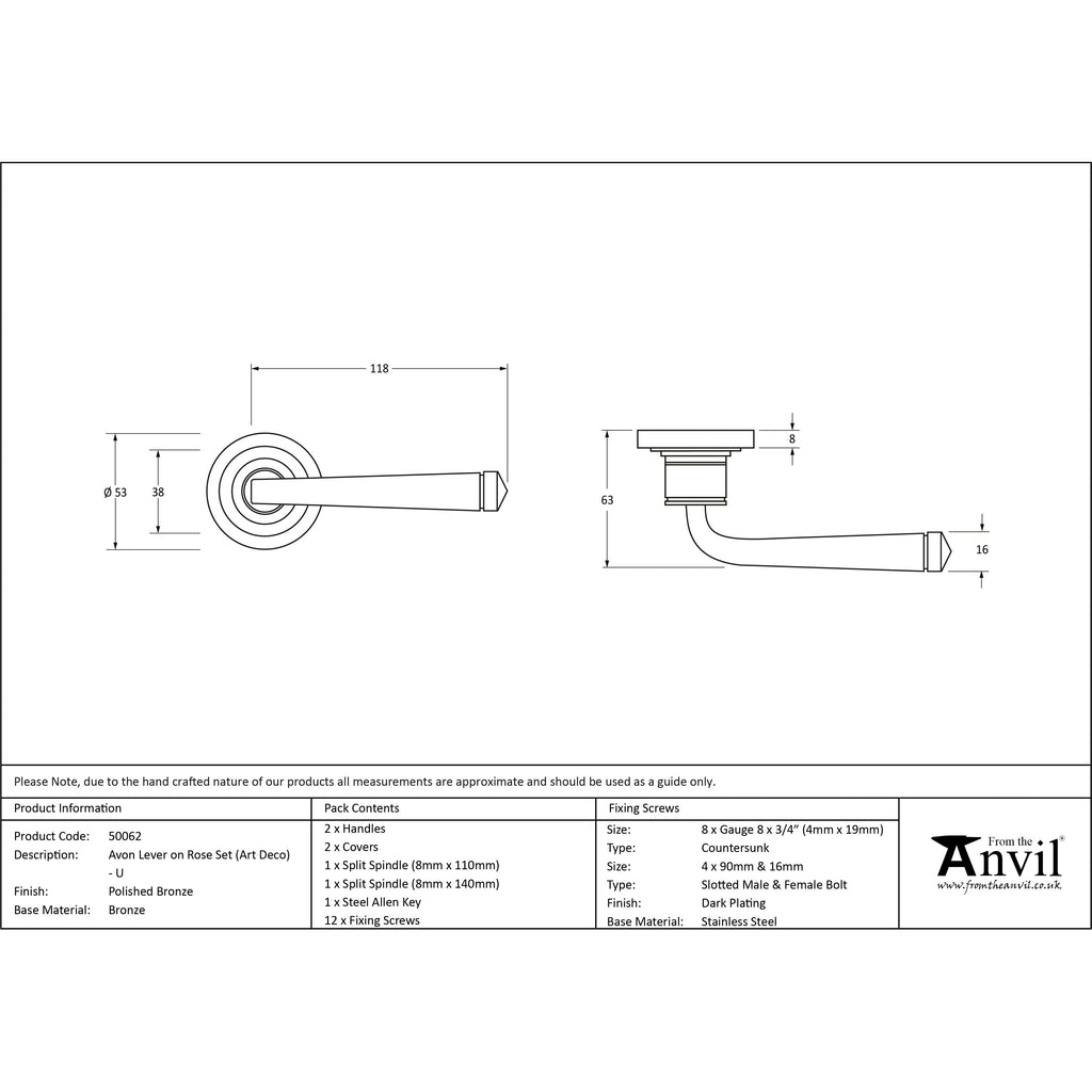 Polished Bronze Avon Round Lever on Rose Set (Art Deco) - Unsprung | From The Anvil