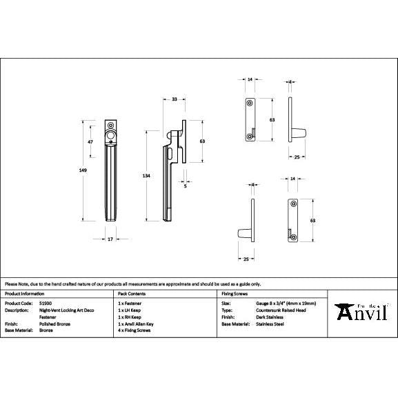 Polished Bronze Night-Vent Locking Art Deco Fastener