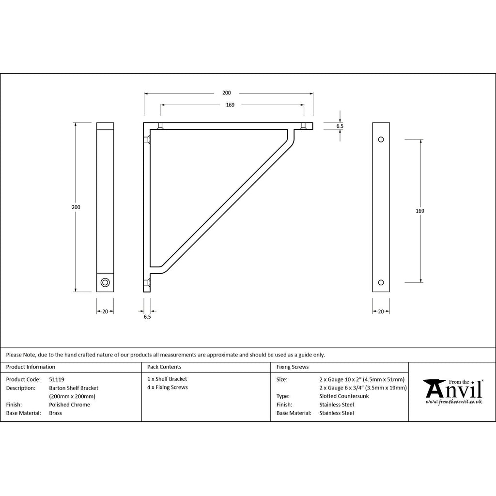 Polished Chrome Barton Shelf Bracket (200mm x 200mm) | From The Anvil