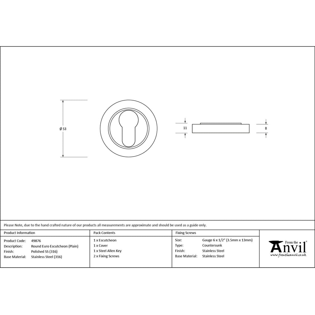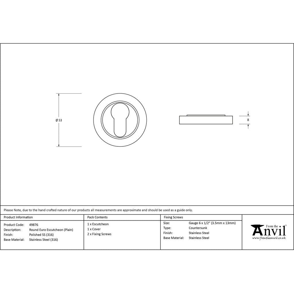 Polished Marine SS (316) Round Euro Escutcheon (Plain) | From The Anvil