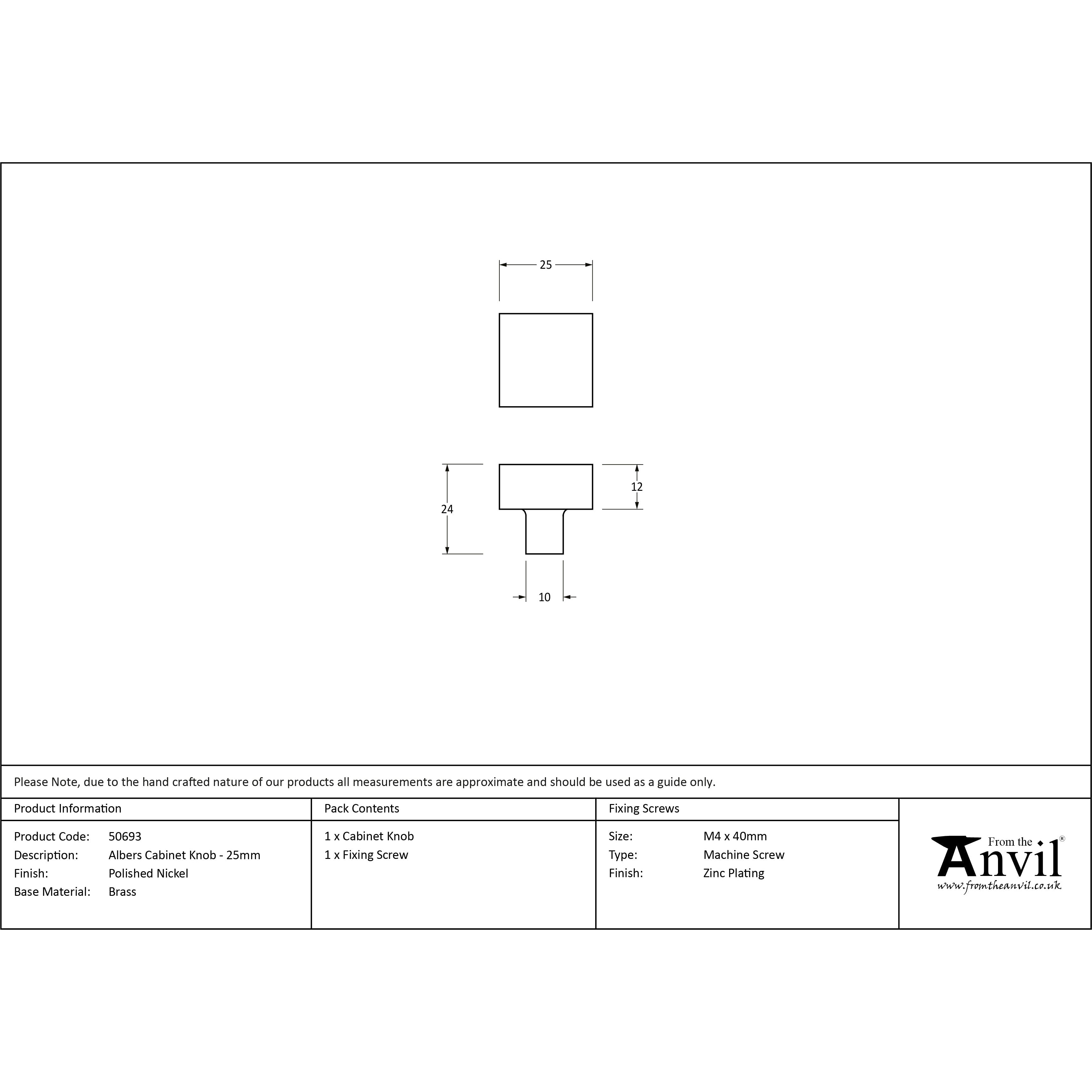 Polished Nickel Albers Cabinet Knob - 25mm | From The Anvil