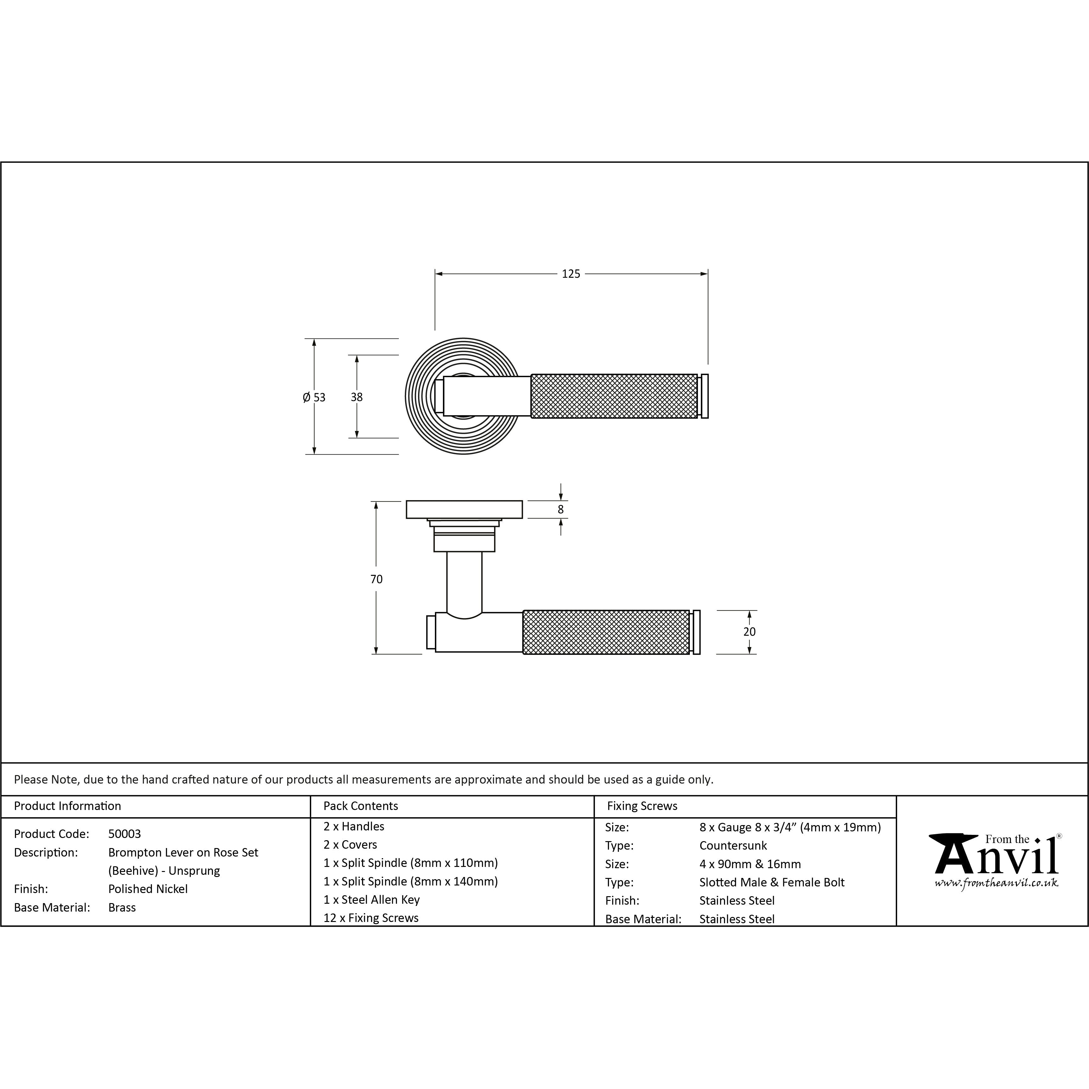 Polished Nickel Brompton Lever on Rose Set (Beehive) - Unsprung | From The Anvil