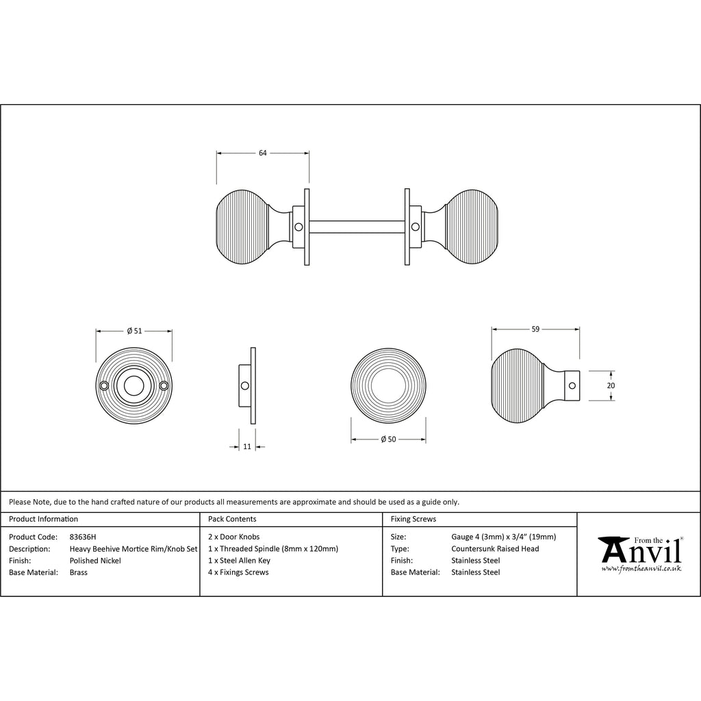 Polished Nickel Heavy Beehive Mortice/Rim Knob Set | From The Anvil